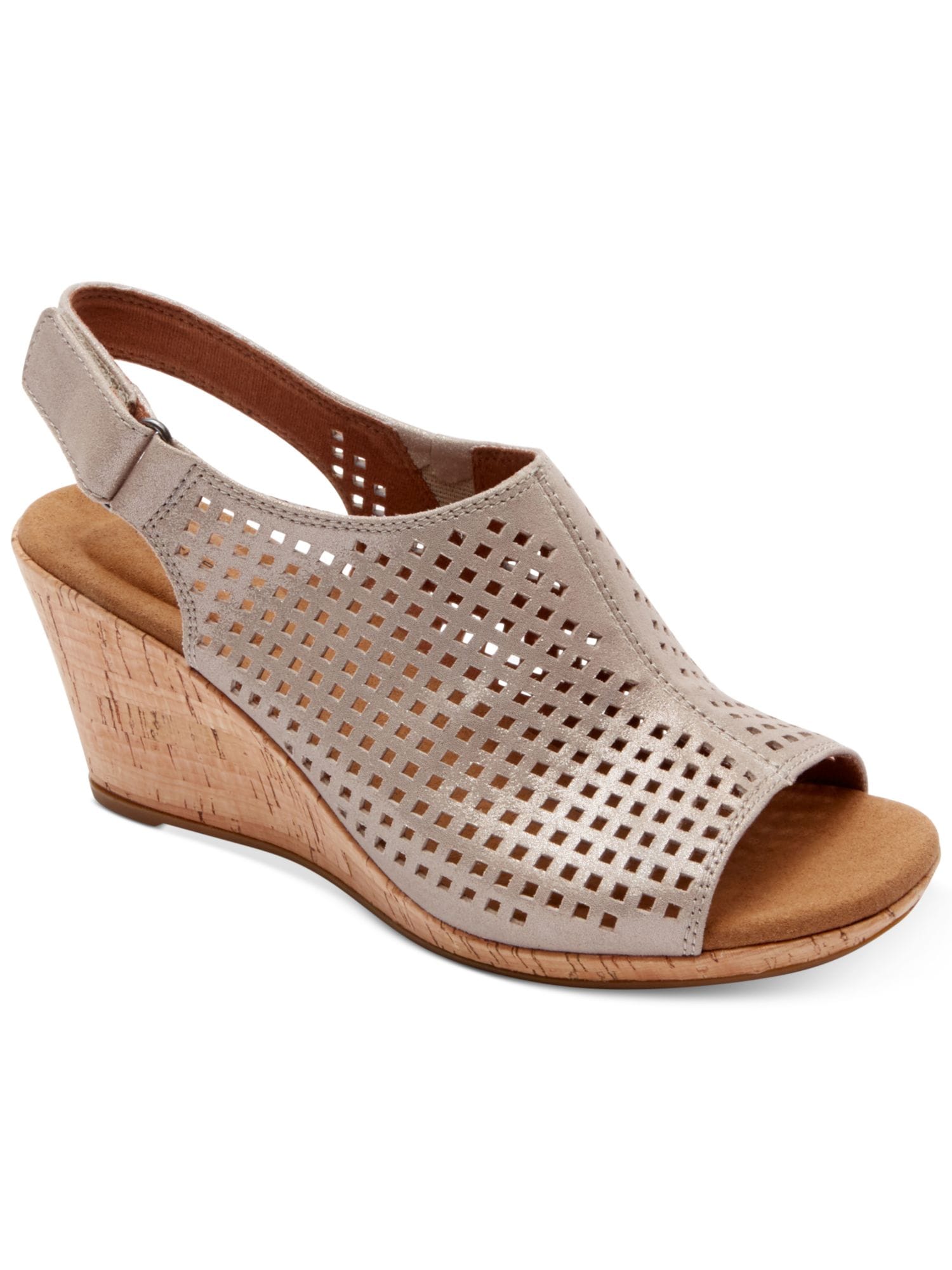 10412304 GOOD CHOICE $39.99 MSRP Womens Gray Adjustable Comfort Padded Buckle Accent Cushioned Justina Round Toe Wedge Slip On Slide Sandals 6.5