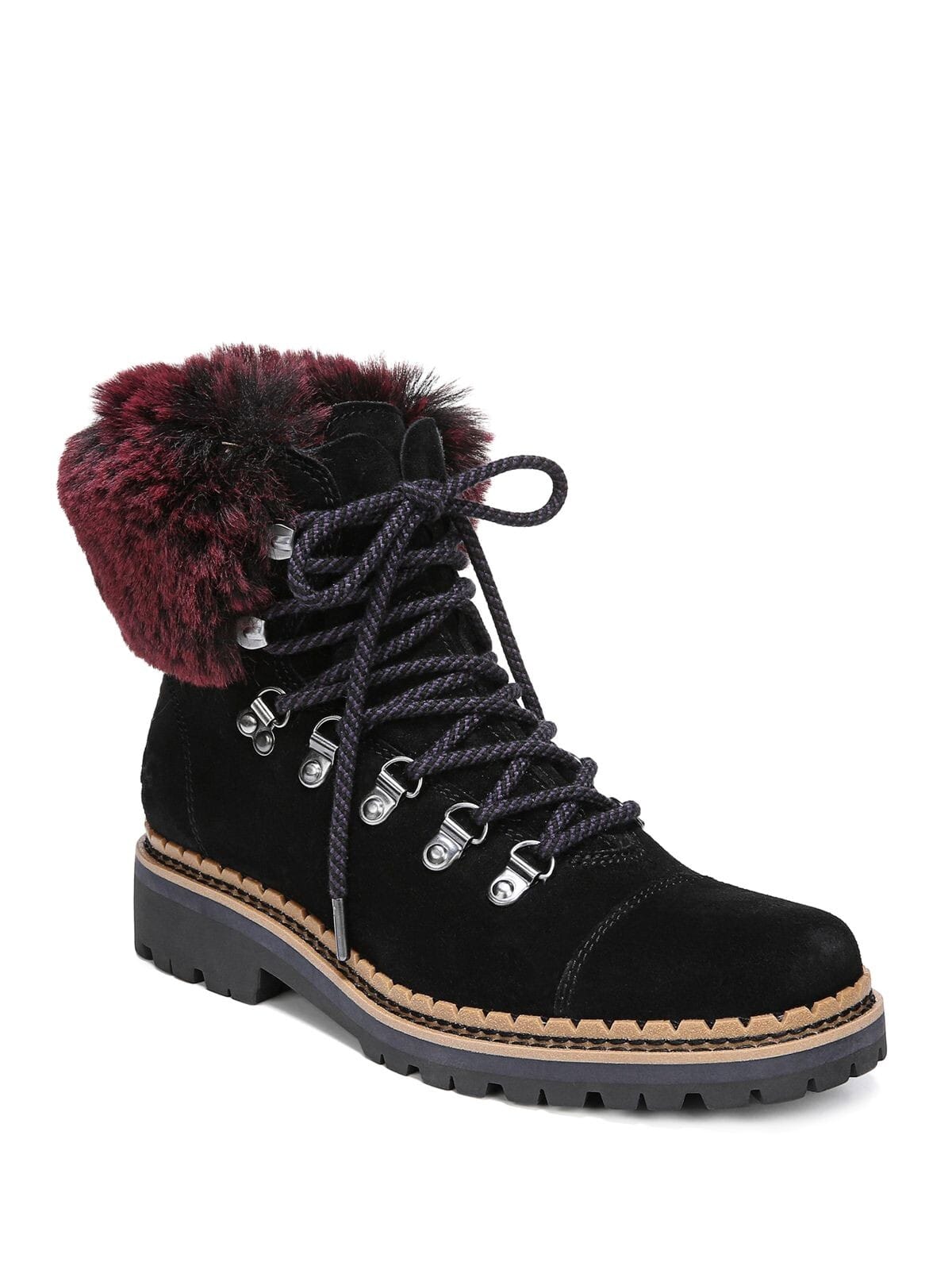 10410275 DOLCE VITA $137 MSRP Womens Brown Versatile Collar Snap Buttons Slip Resistant Fur Trim Comfort Trudie Round Toe Block Heel Lace-Up Leather Combat Boots 7.5 M