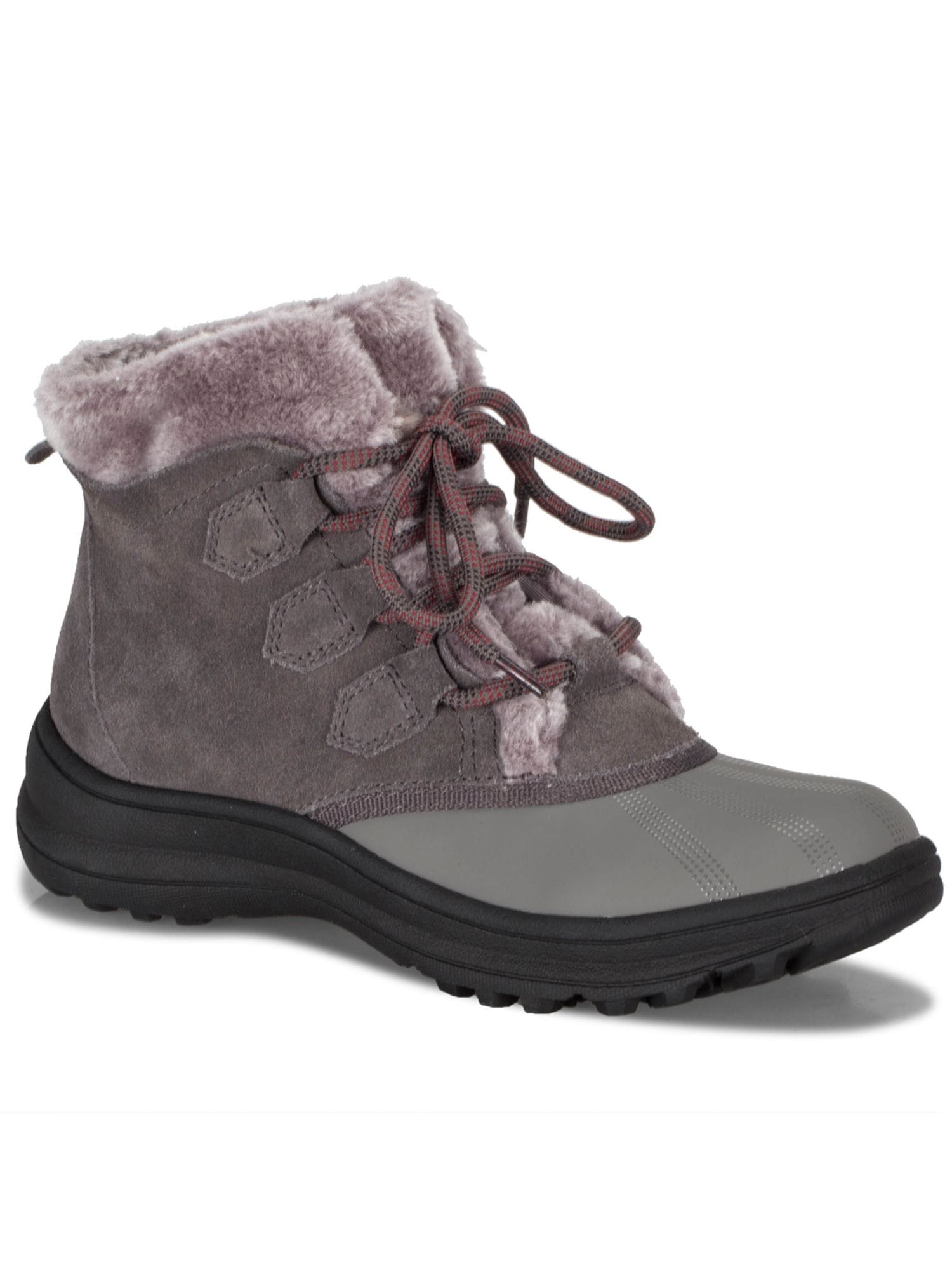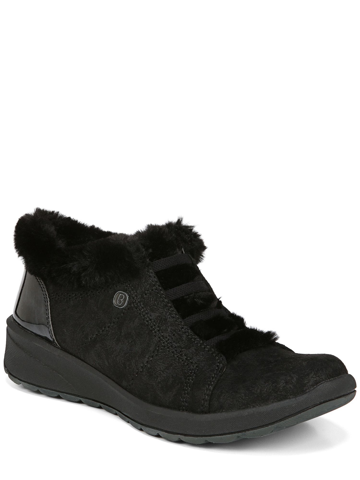 10412351 EASY SPIRIT $99 MSRP Womens Black 1/2" Platform Shock Absorbent Padded Arch Support Quilted Fur Trim Water Resistant Elinot Round Toe Wedge Booties 8.5 W