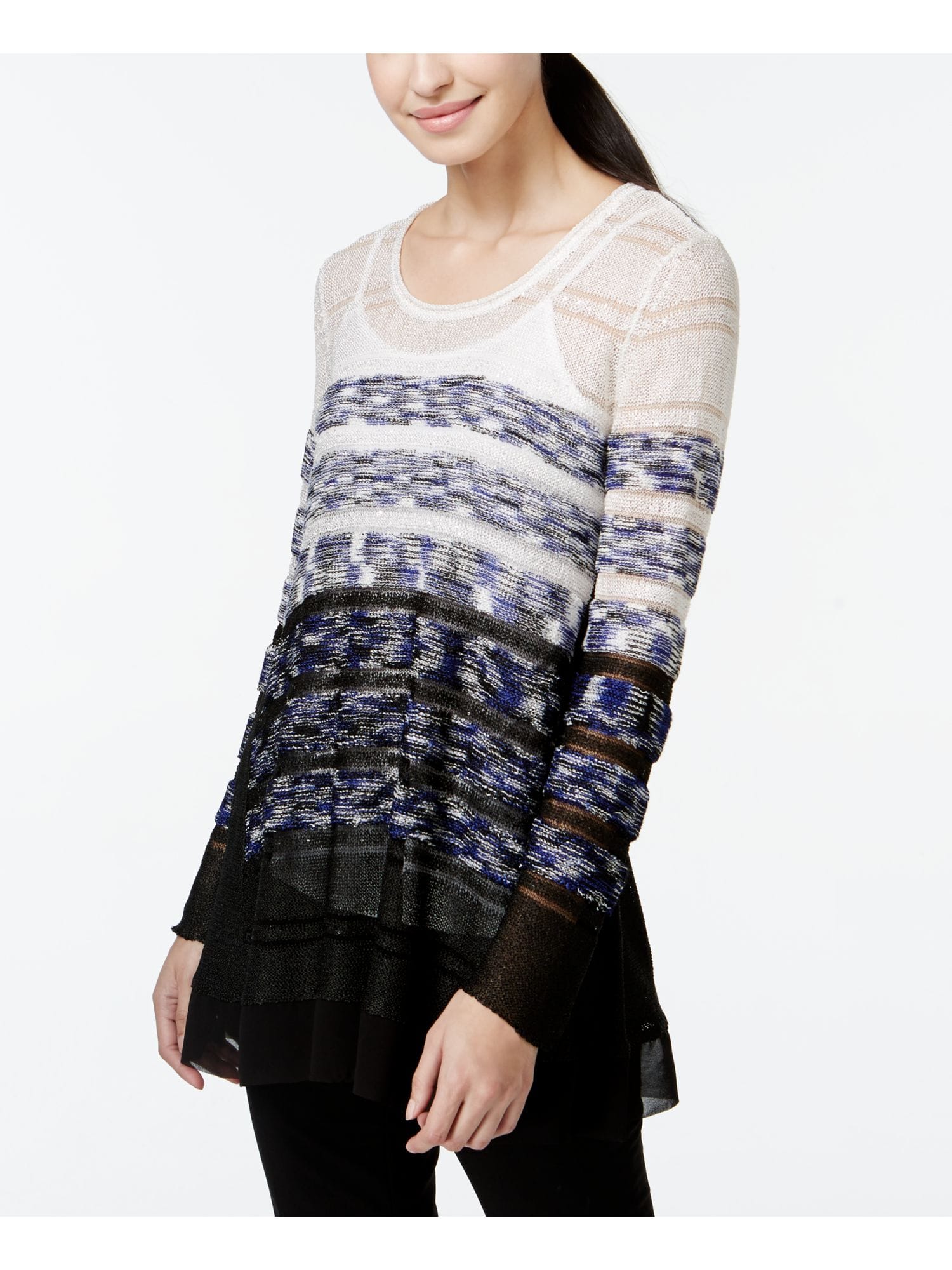 10040996 ALFANI $89.50 MSRP Alfani Womens Black Striped, Ombre Long Sleeve Scoop Neck Top Size: M