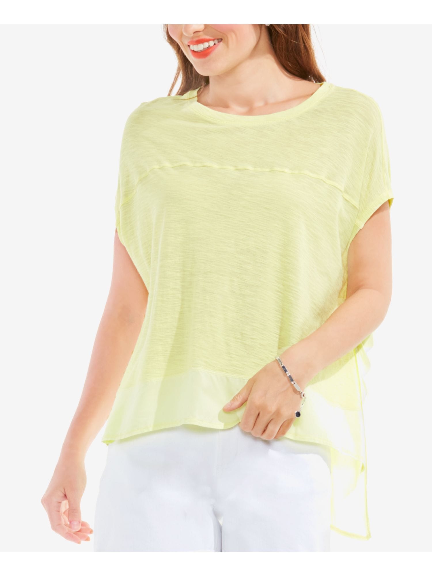 60450476 VINCE CAMUTO $69 MSRP Womens Ivory Smocked Silk Short Sleeve V Neck Wear To Work Top XS