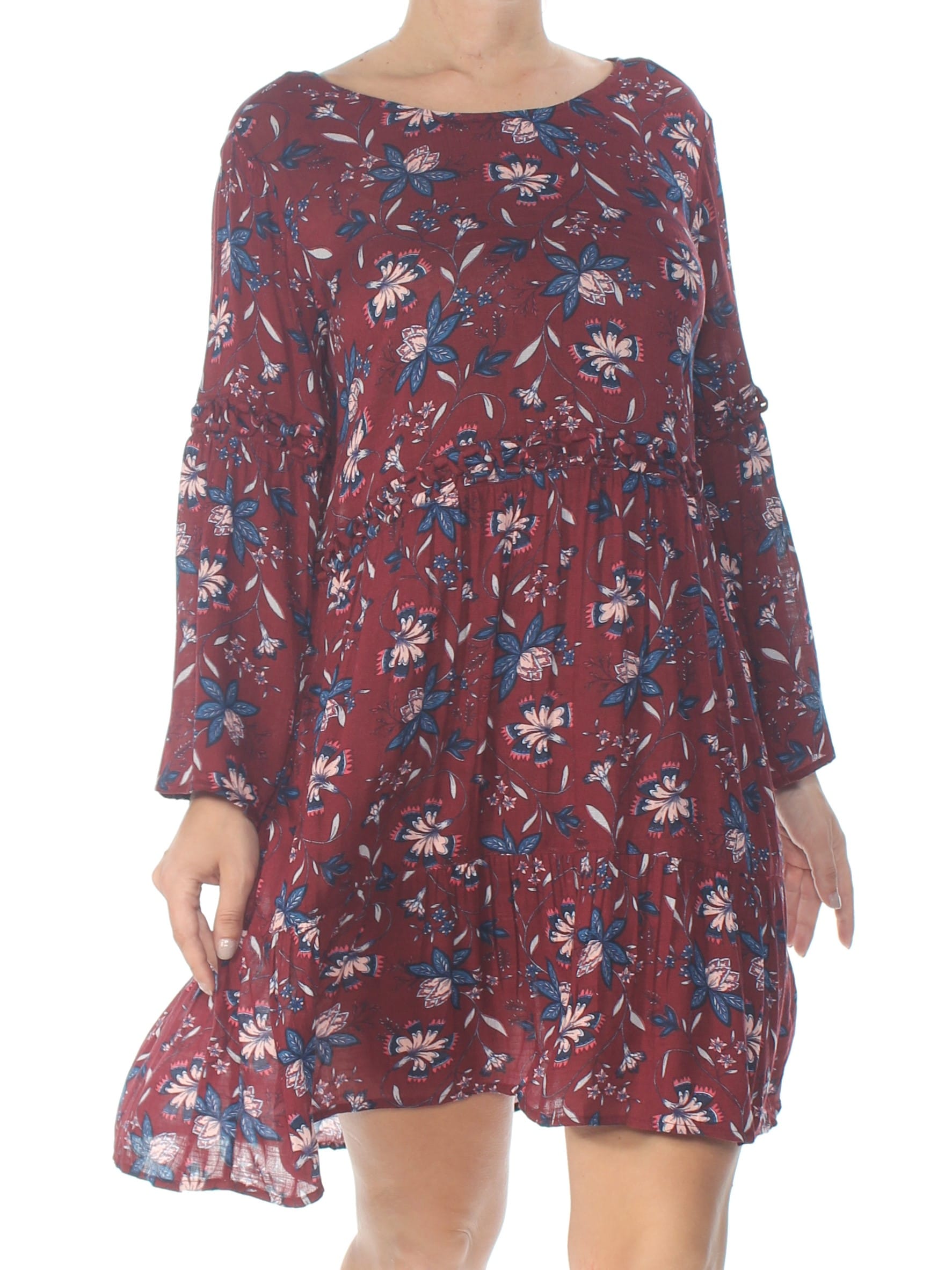 10147487 WILLIAM RAST $99.50 MSRP Womens Burgundy Floral Long Sleeve Jewel Neck Above The Knee Baby Doll Dress L