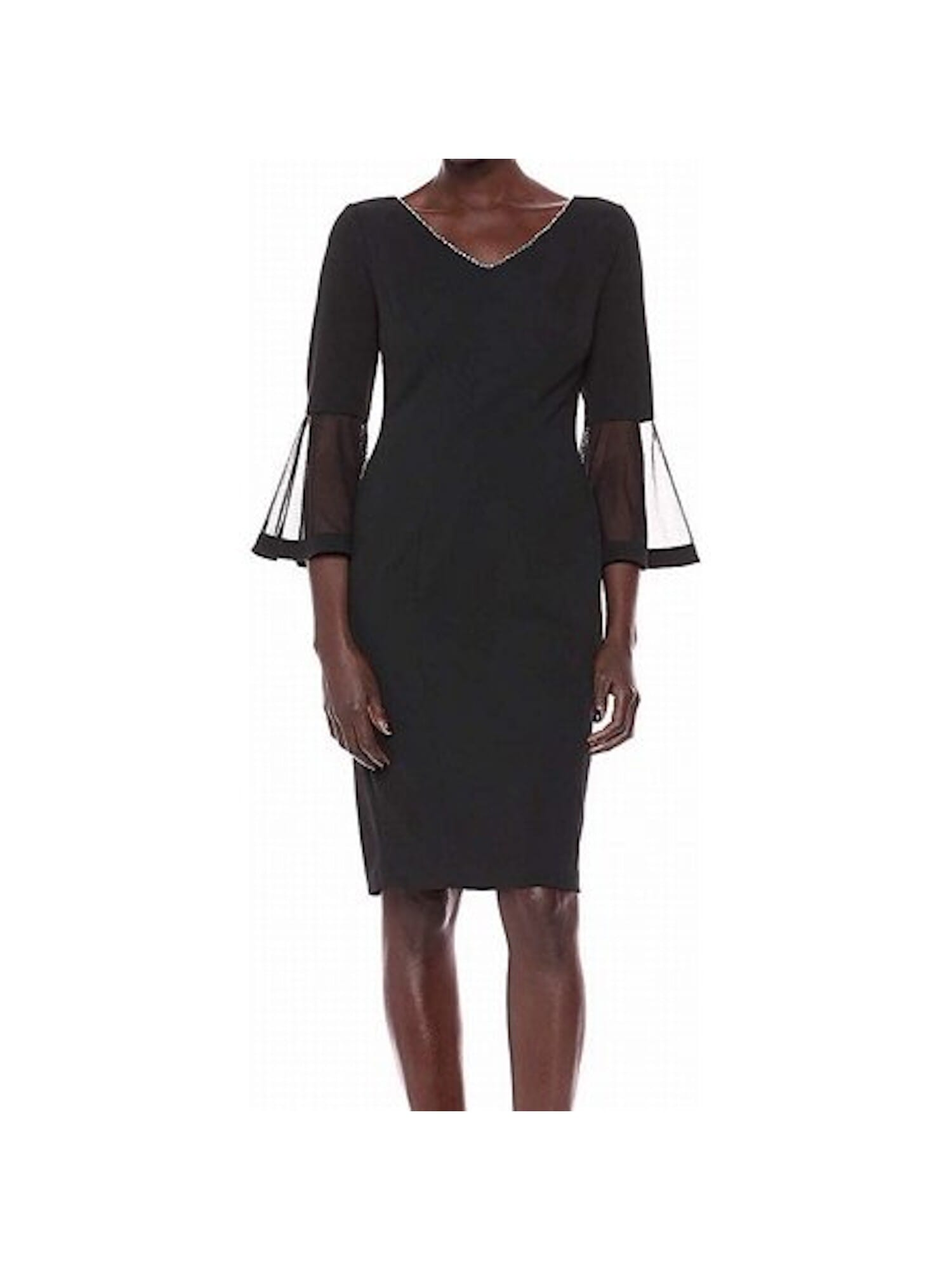 10149989 ALEX EVENINGS $179 MSRP Womens Black Embellished Bell Sleeve V Neck Knee Length Evening Sheath Dress 4