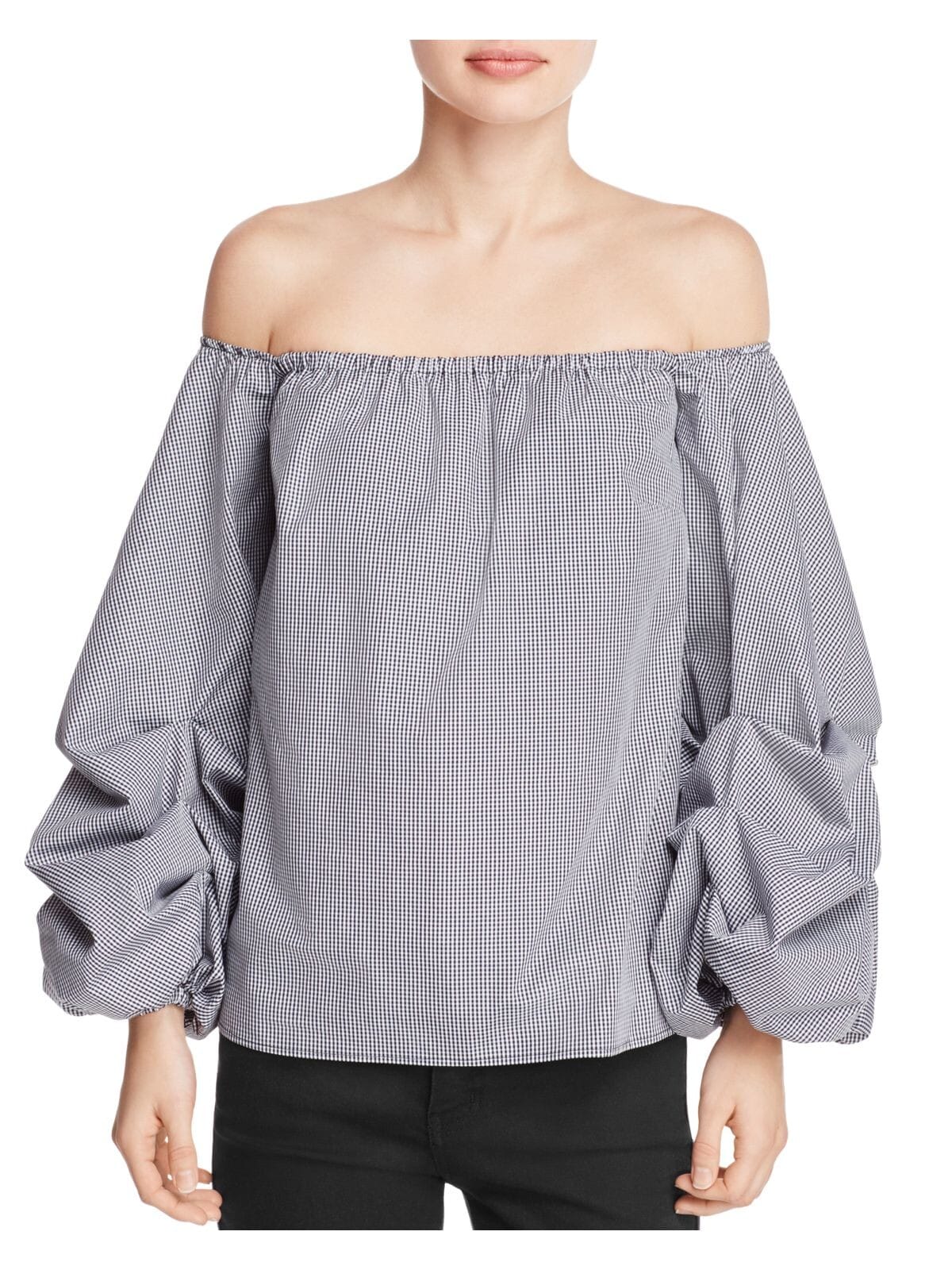 10152199 PETERSYN $220 MSRP Womens Gray Check Long Sleeve Off Shoulder Blouse XS