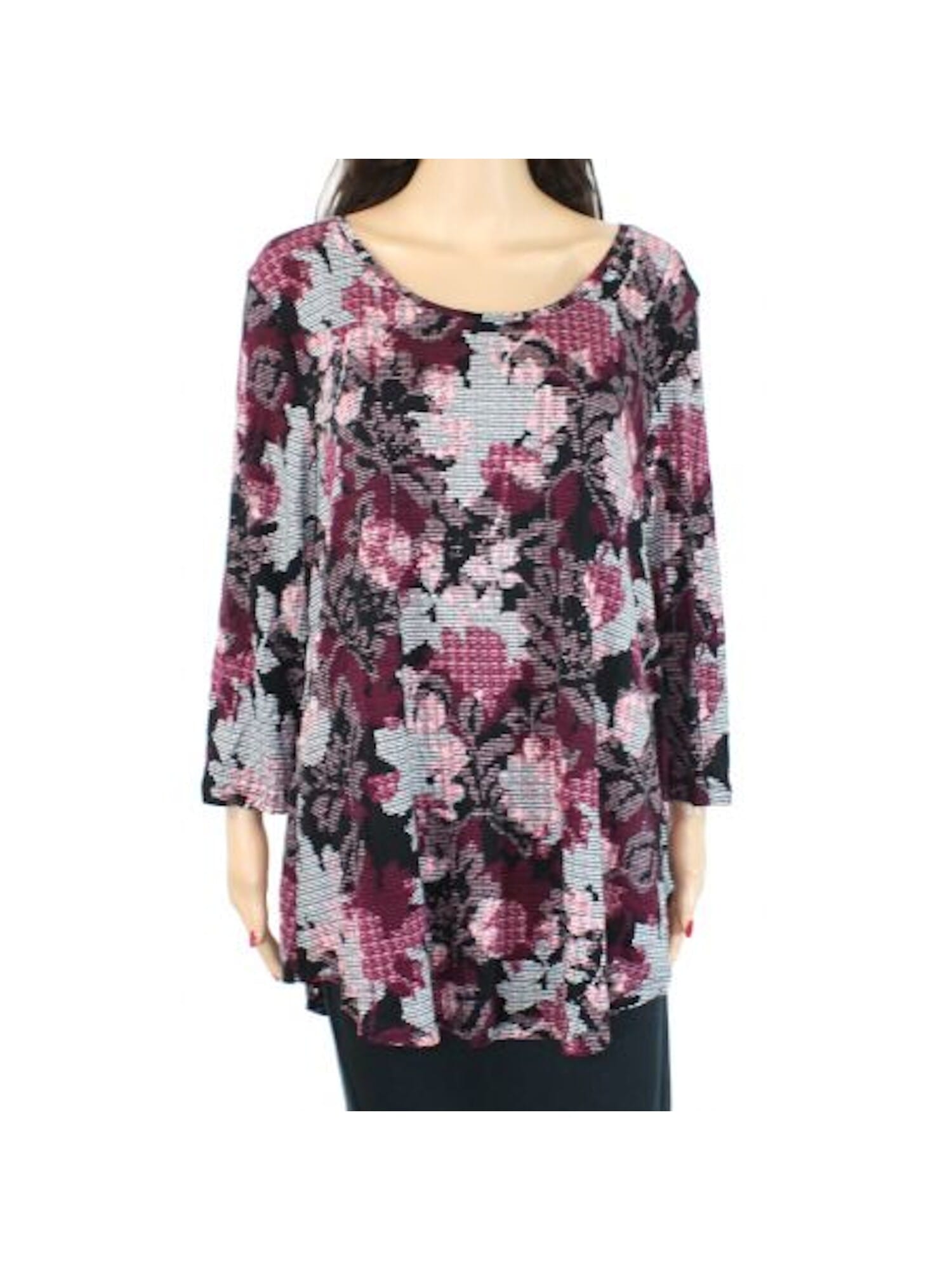 10152912 JM COLLECTION $299 MSRP Womens Pink Printed Long Sleeve Jewel Neck Top XS