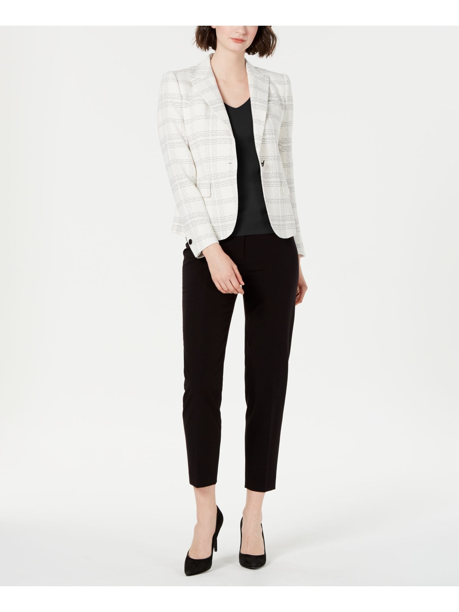 10152970 ANNE KLEIN $149 MSRP Womens Beige Single Button Striped Wear To Work Jacket 4