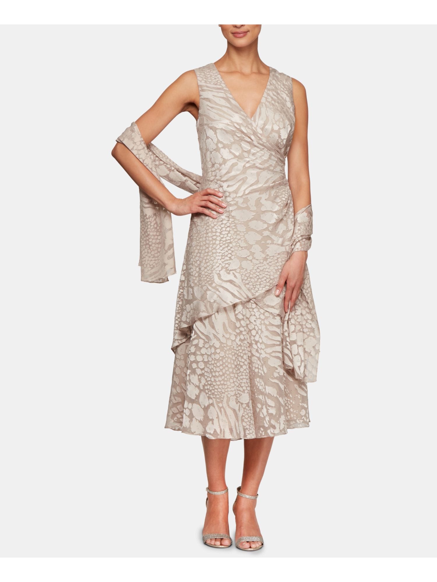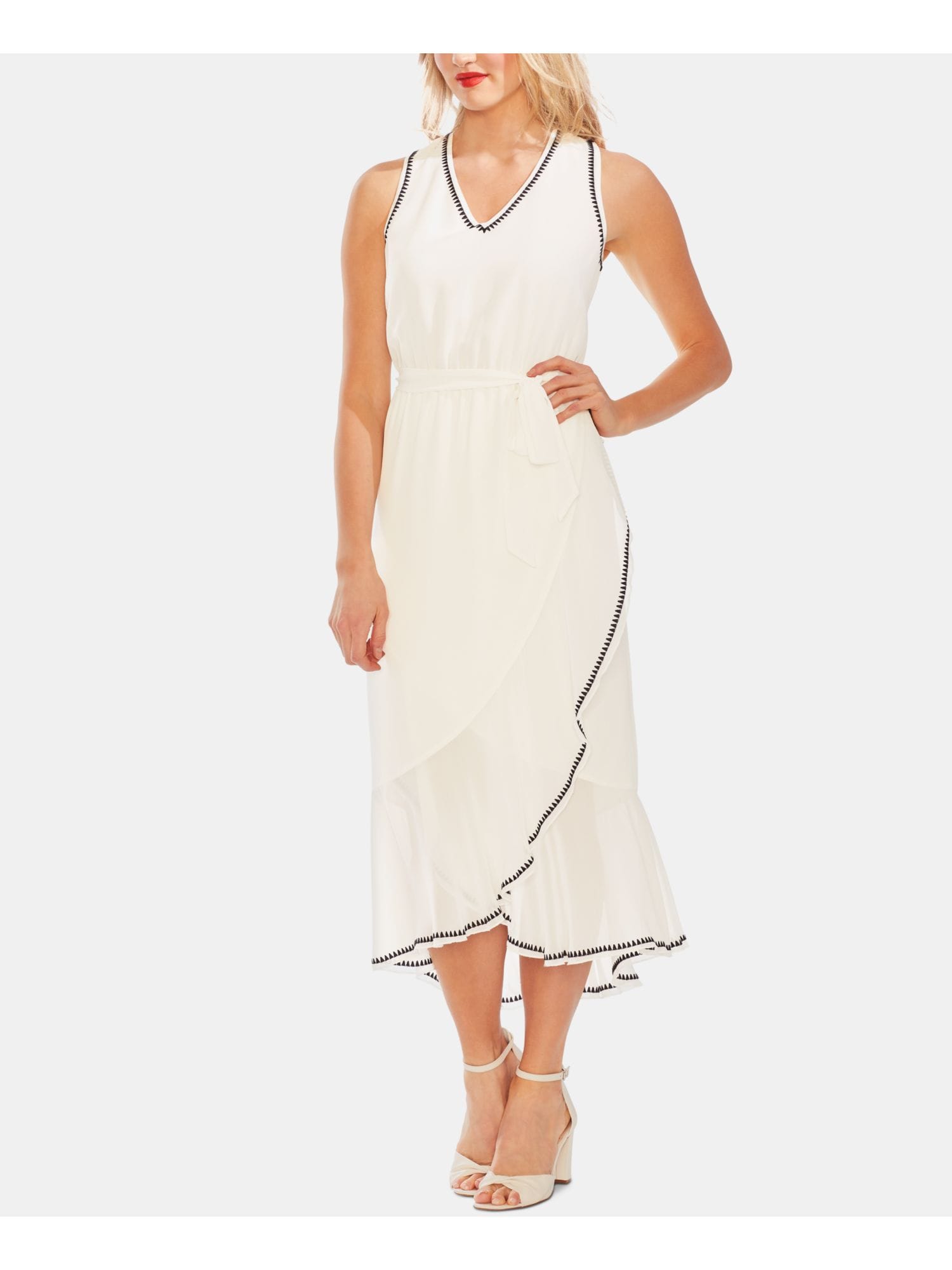 10153849 VINCE CAMUTO $139 MSRP Womens White Sleeveless V Neck Tea-Length Cocktail Ruffled Dress 2