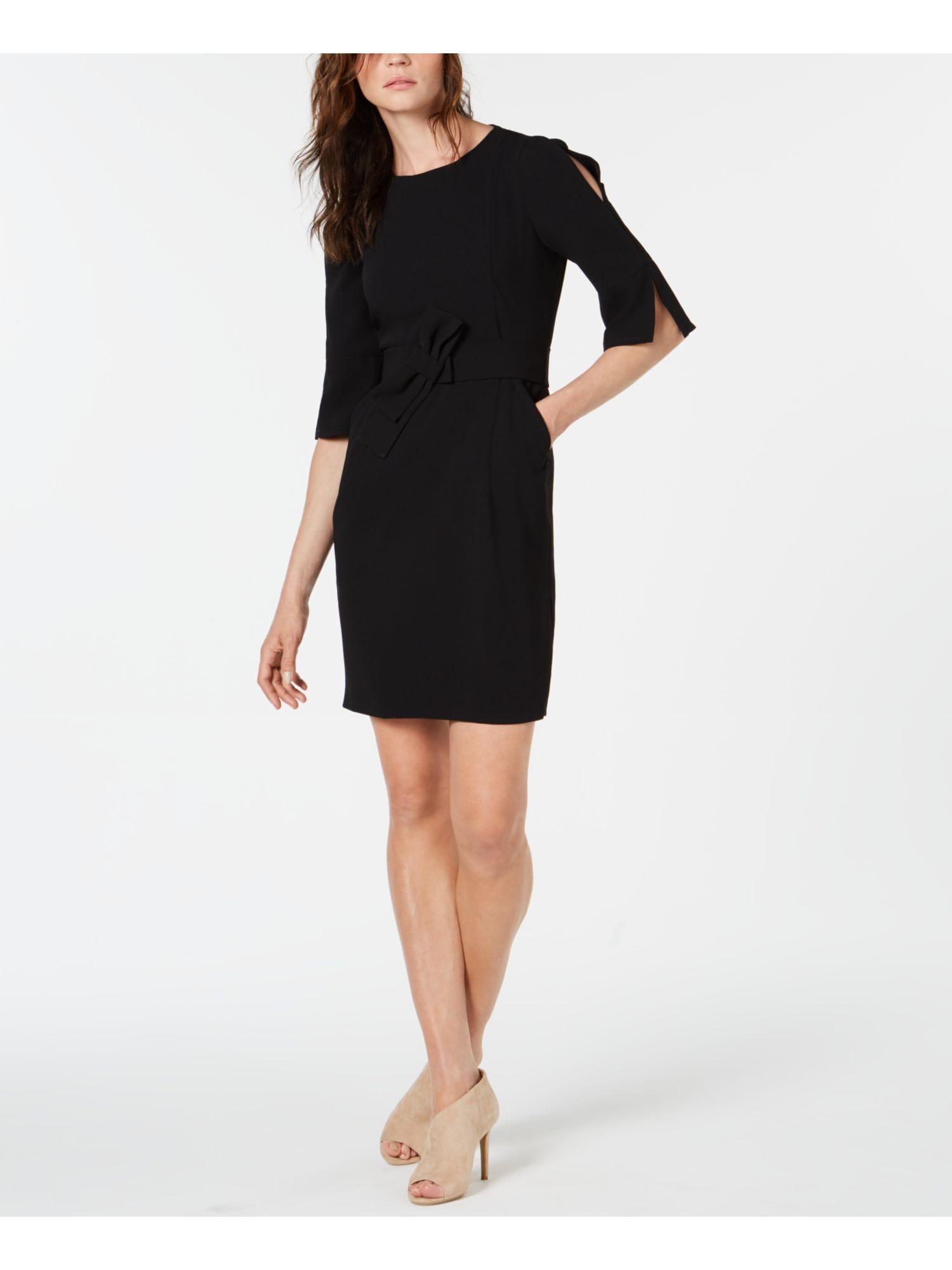 10153853 MARELLA $325 MSRP Womens Black Belted 3/4 Sleeve Jewel Neck Above The Knee Wear To Work Sheath Dress 8