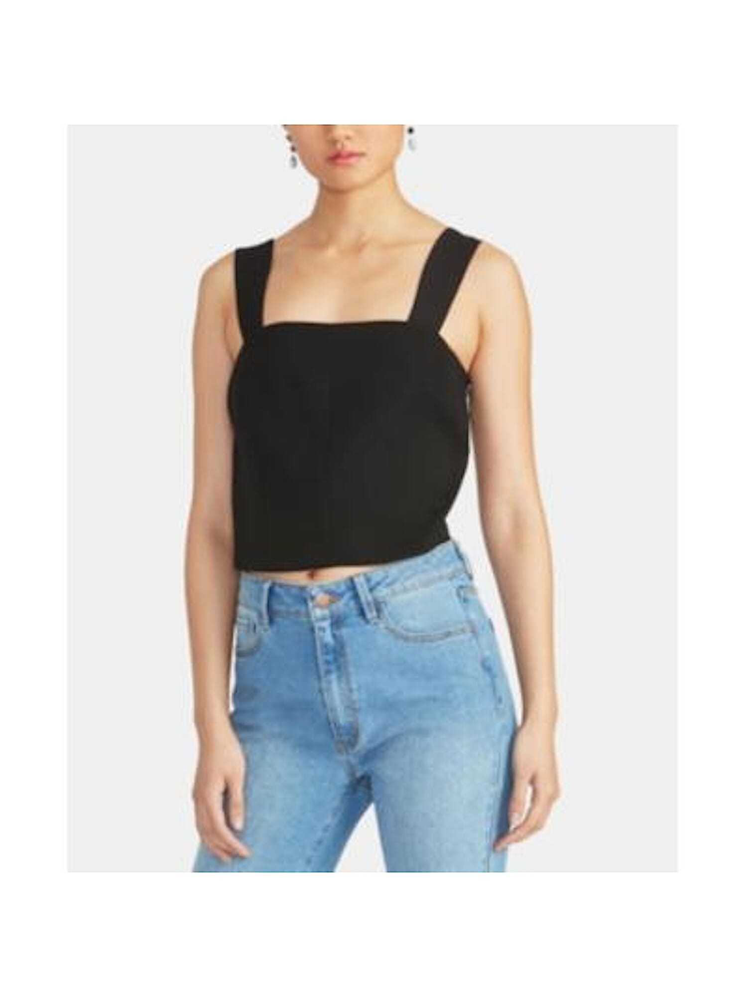 10154016 RACHEL ROY $89 MSRP Womens Black Sleeveless Square Neck Crop Top M