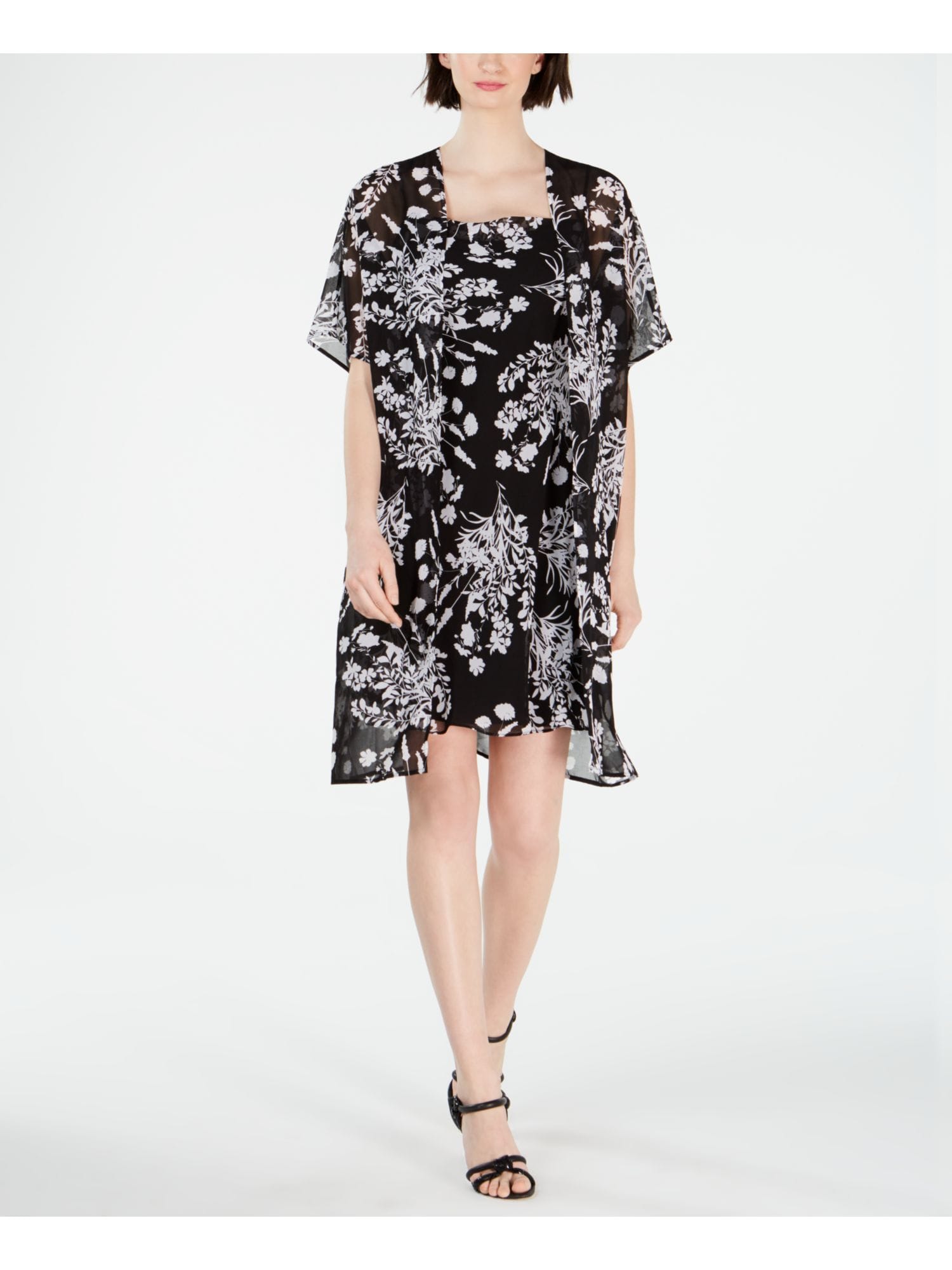 10164714 CALVIN KLEIN $149 MSRP Womens Black Sheer Floral Short Sleeve Open Cardigan Party Top Petites 12P