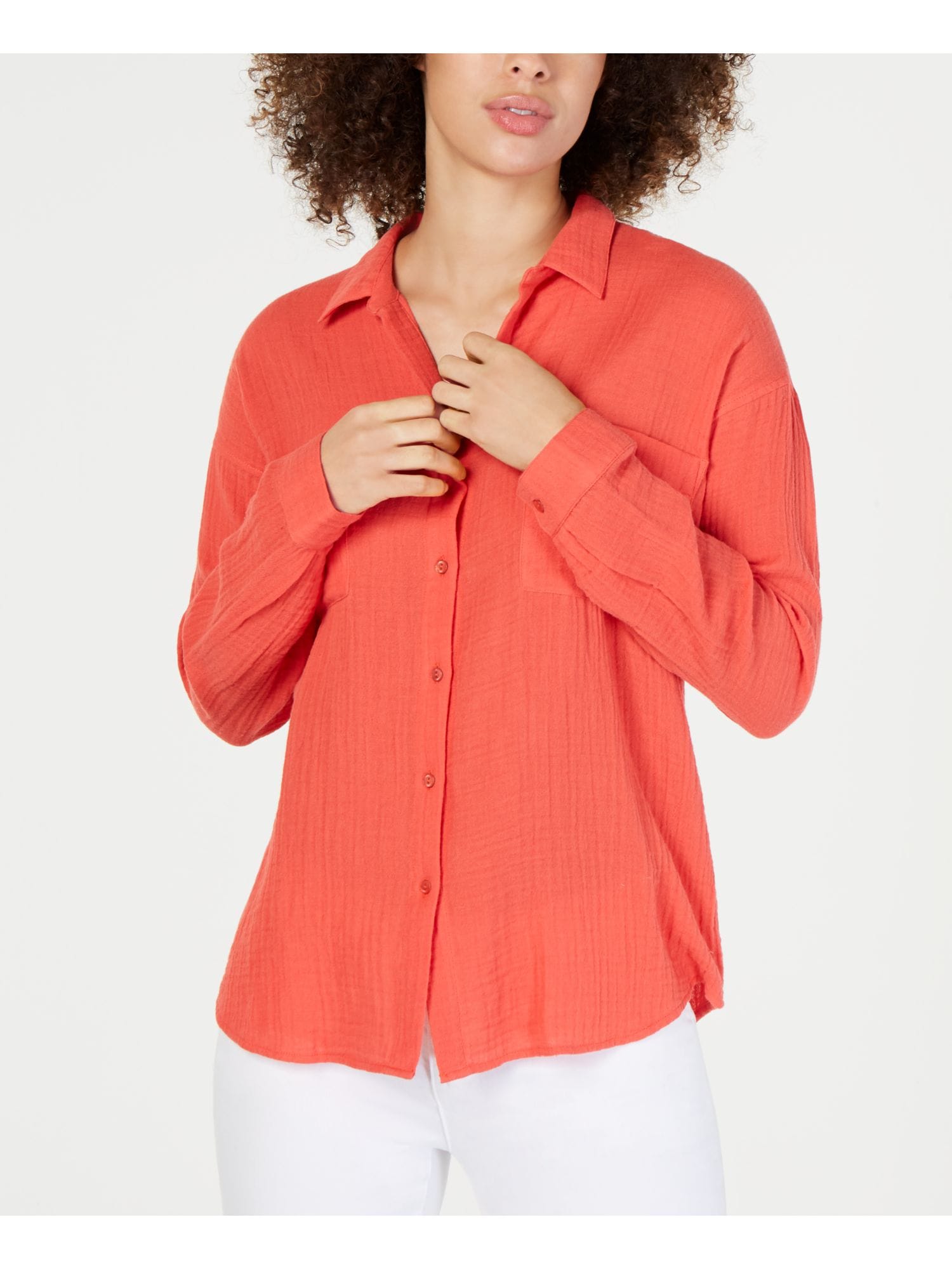 10210541 EILEEN FISHER $168 MSRP Womens Orange Long Sleeve Collared Button Up Top L