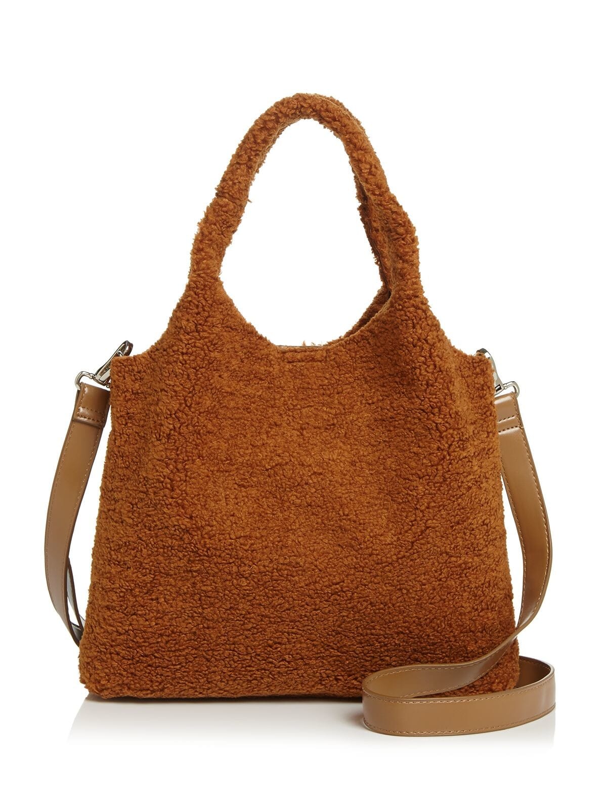 10211448 AQUA $88 MSRP Women's Brown Faux Fur Double Flat Strap Shoulder Bag