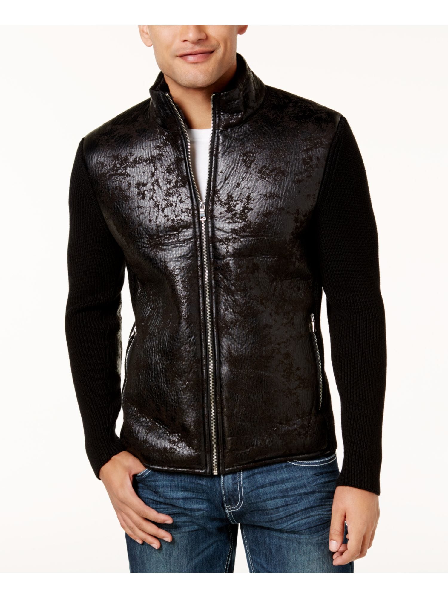 10215696 INC $99.50 MSRP Mens Black Faux Sherpa Lining, Zip Up Jacket L