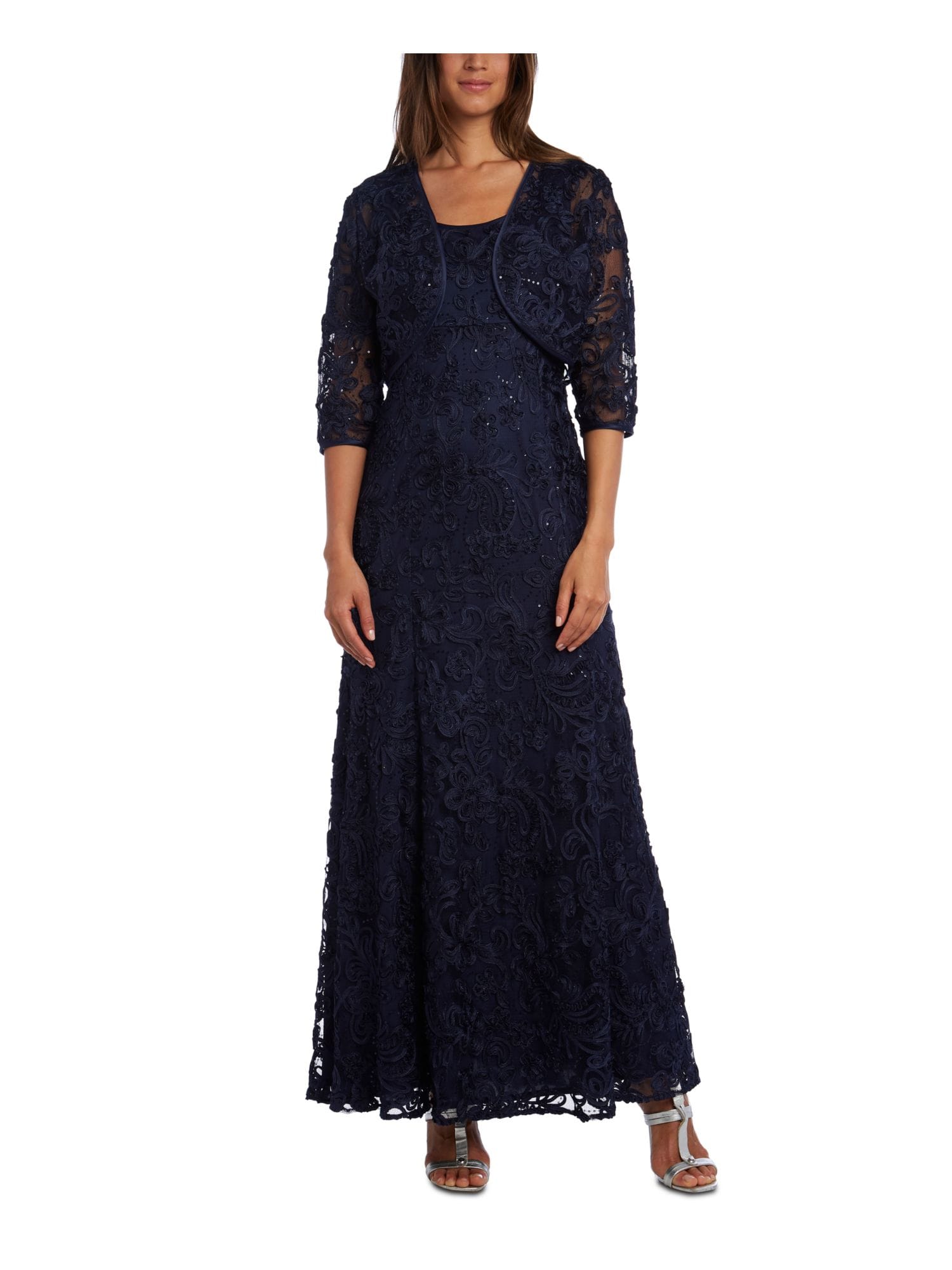 10206404 R&M RICHARDS $189 MSRP Womens Navy Sequined Floral 3/4 Sleeve Open Cardigan Evening Tunic Top 8