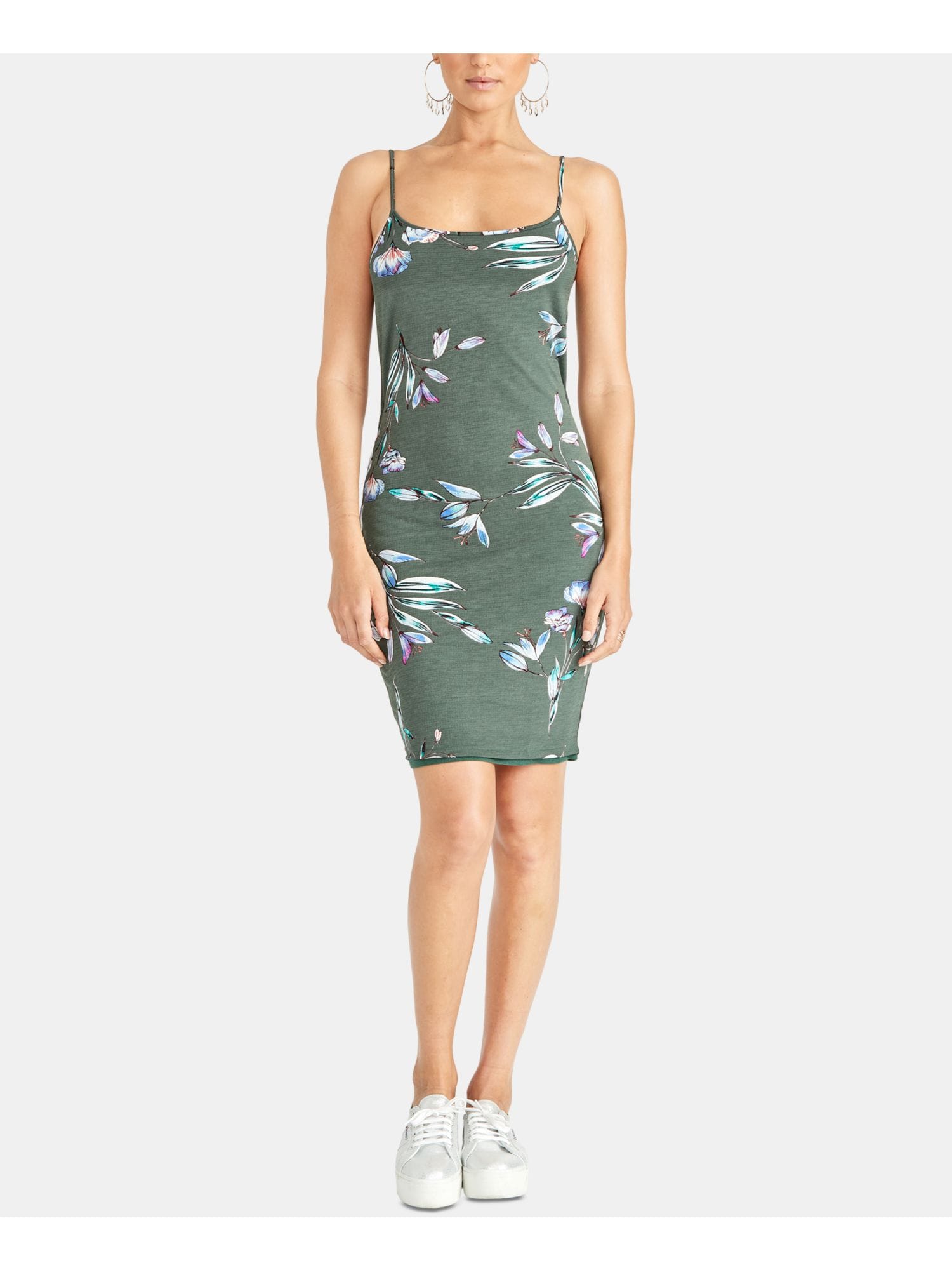 10225832 RACHEL ROY $109 MSRP Womens Green Twist Back Floral Spaghetti Strap Scoop Neck Above The Knee Body Con Dress XL