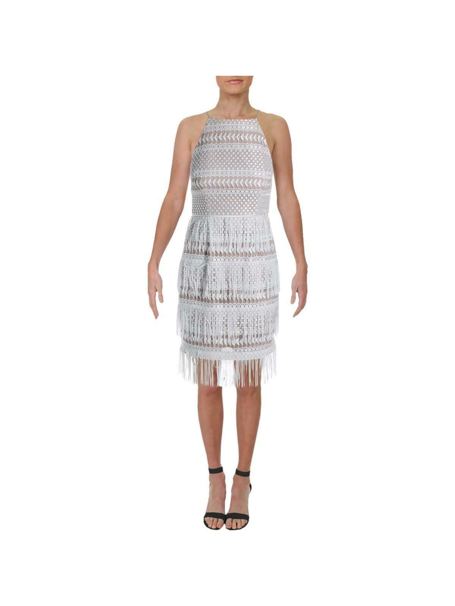 10152149 RACHEL ZOE $545 MSRP Womens White Lace Sleeveless Halter Midi Formal Sheath Dress 8