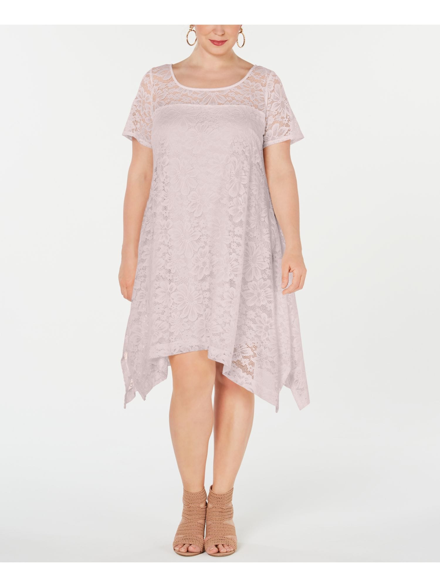 10158081 NY COLLECTION $49 MSRP Womens Black Tie Front Printed Short Sleeve V Neck Hi-Lo Top Plus 1X