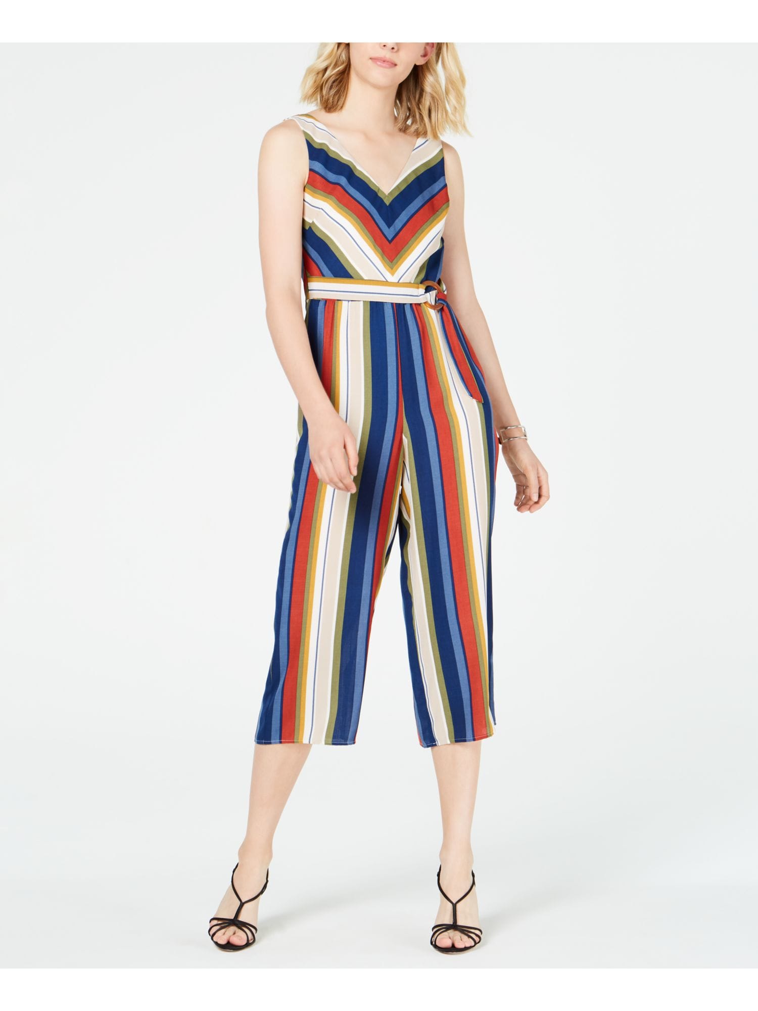60452644 VINCE CAMUTO $99 MSRP Womens Light Blue Zippered Asymmetrical Hem Sleeveless V Neck Cropped Jumpsuit S