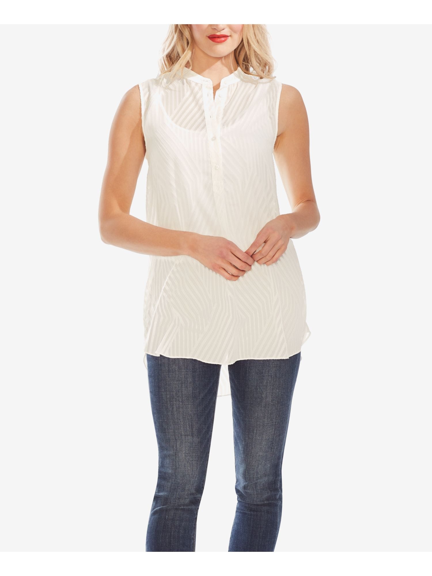 60452619 VINCE CAMUTO $59 MSRP Womens Ivory Slitted Lined Animal Print Sleeveless V Neck Tank Top XL