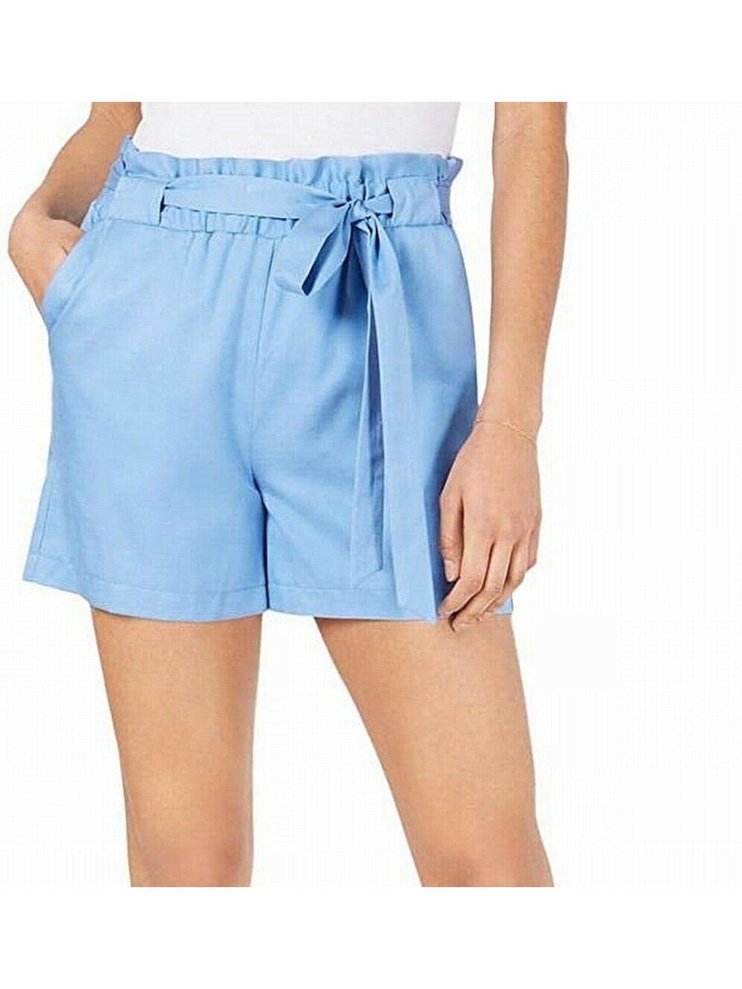 60452642 FRAYED JEANS $59.50 MSRP Womens Blue Denim Frayed Zippered Pocketed Cut Off High Waist Shorts 28