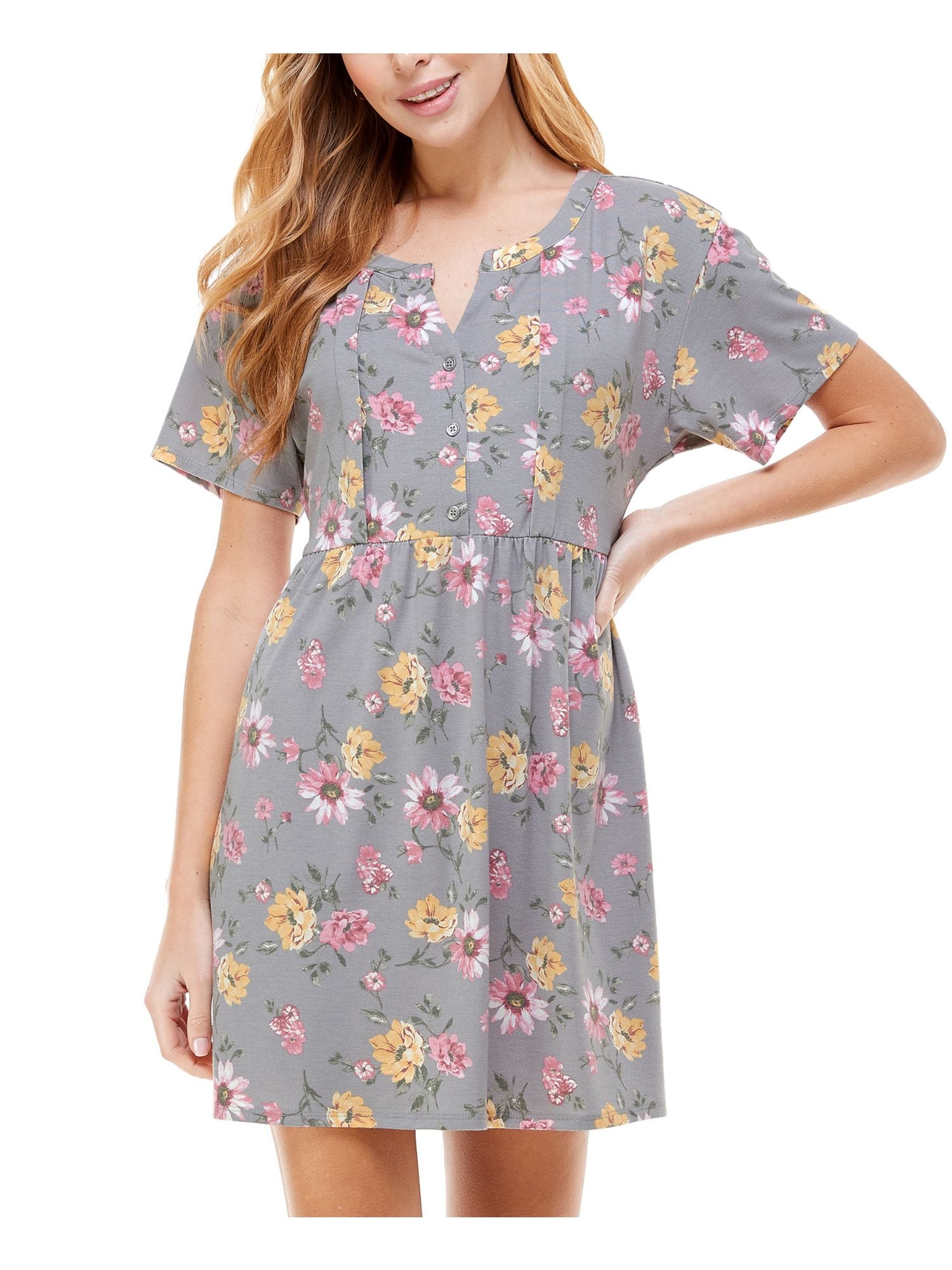 10124744 WILLIAM RAST $55.99 MSRP Womens Blue Thermal Button Neck Floral Print Short Sleeve Scoop Neck Top L