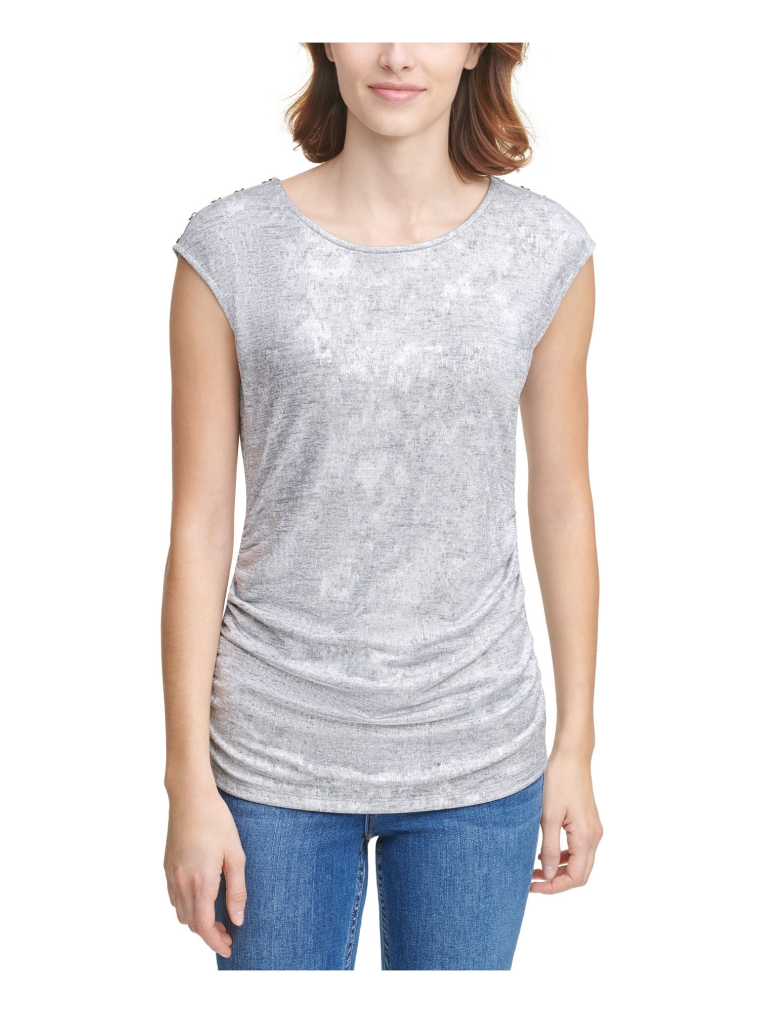10092633 VINCE CAMUTO $76.99 MSRP Womens Blue Animal Print Sleeveless Jewel Neck T-Shirt S