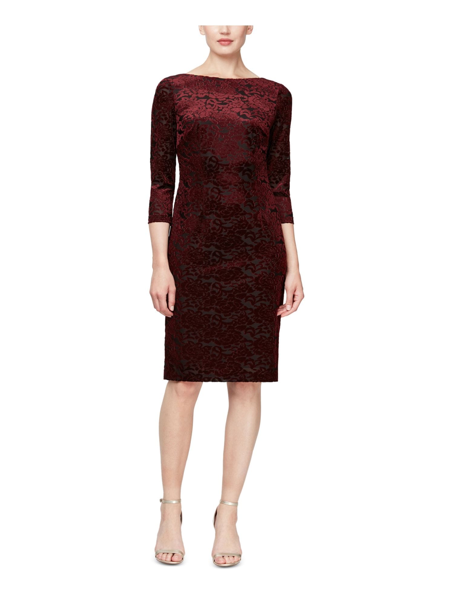 10210556 SLNY $139 MSRP Womens Burgundy Sequined Zippered Short Sleeve Jewel Neck Full-Length Evening Sheath Dress 8