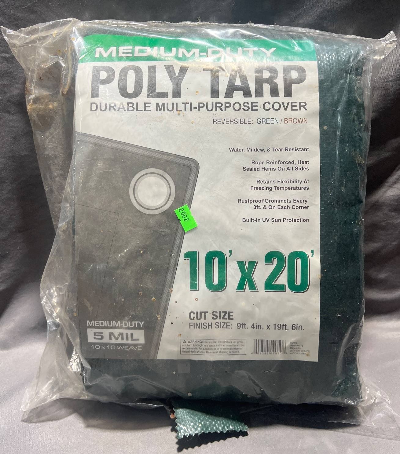 2002 Medium-Duty Poly Tarp, Reversible Green/Brown with Rustproof Grommets, 10’x20?