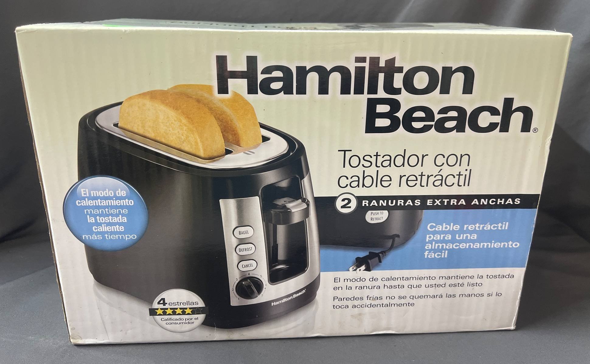 2003 Hamilton Beach Retractable Cord Toaster with 2 Extra-Wide Slots, 13” x 8.5” x 8.5”