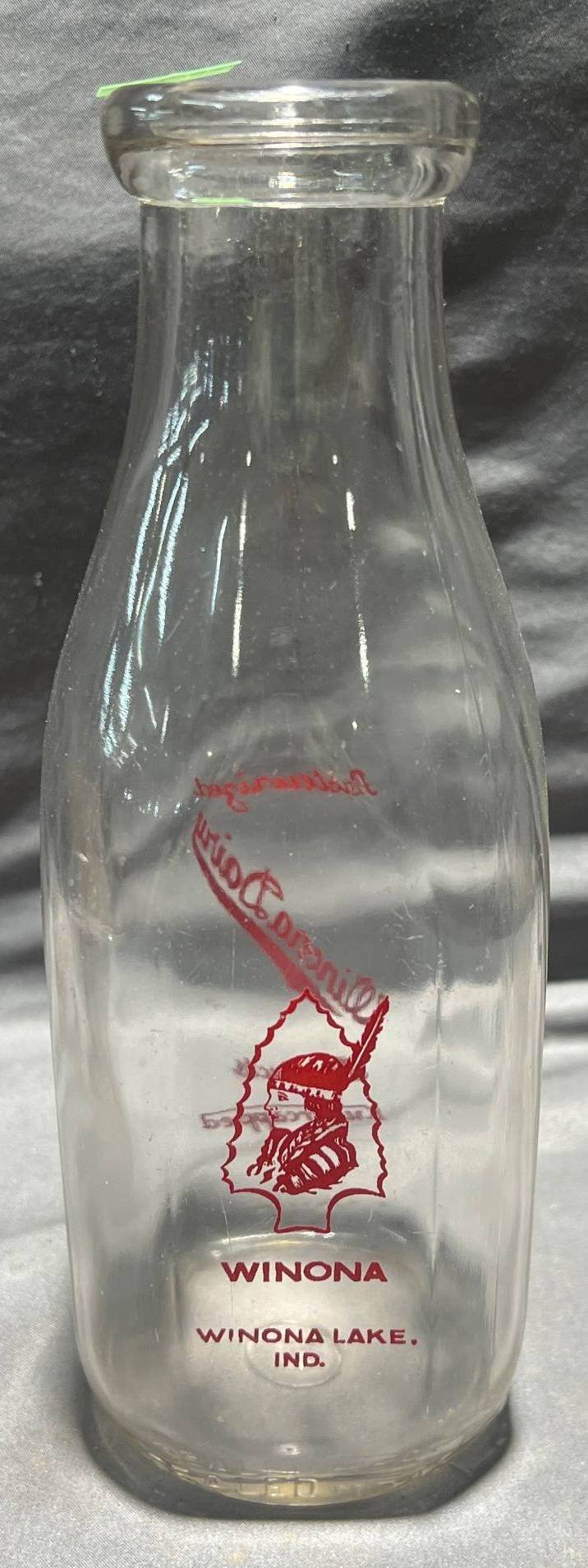 2005 Winona Dairy, Winona Lake IND. Glass Milk Bottle with Printed Branding, 3” x 9.5”