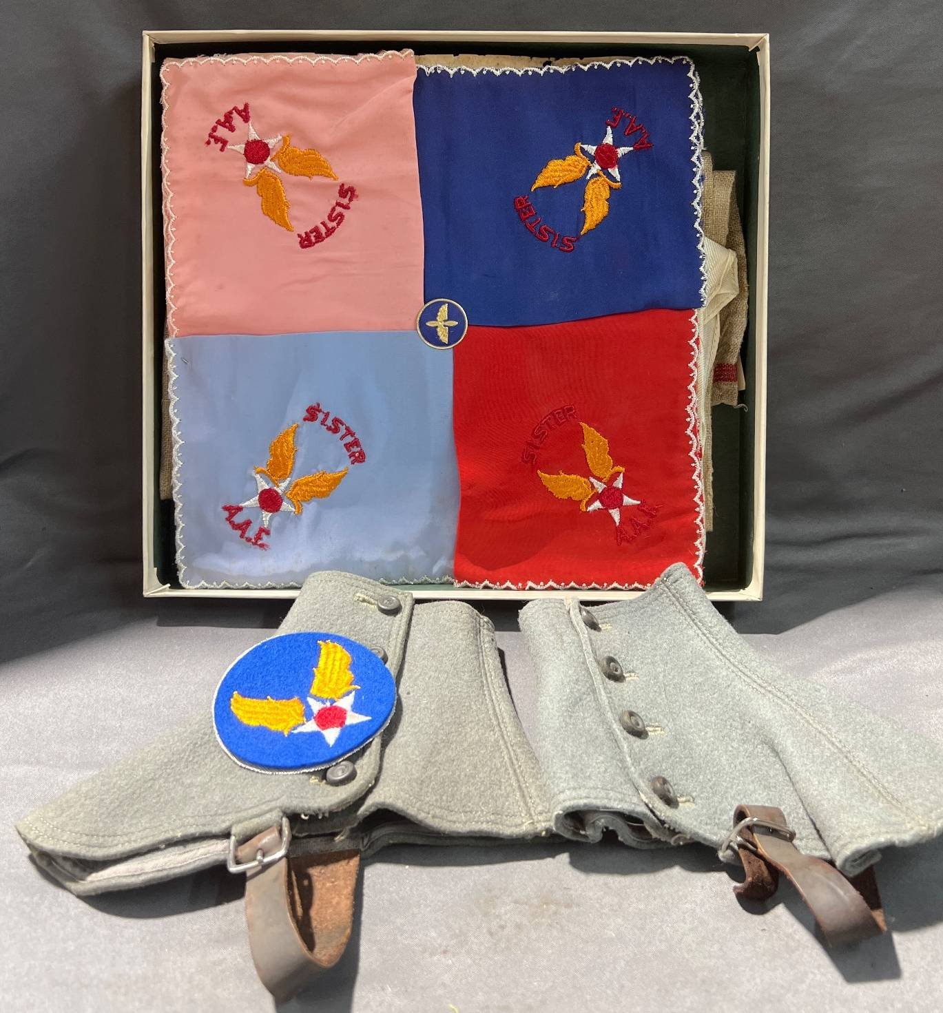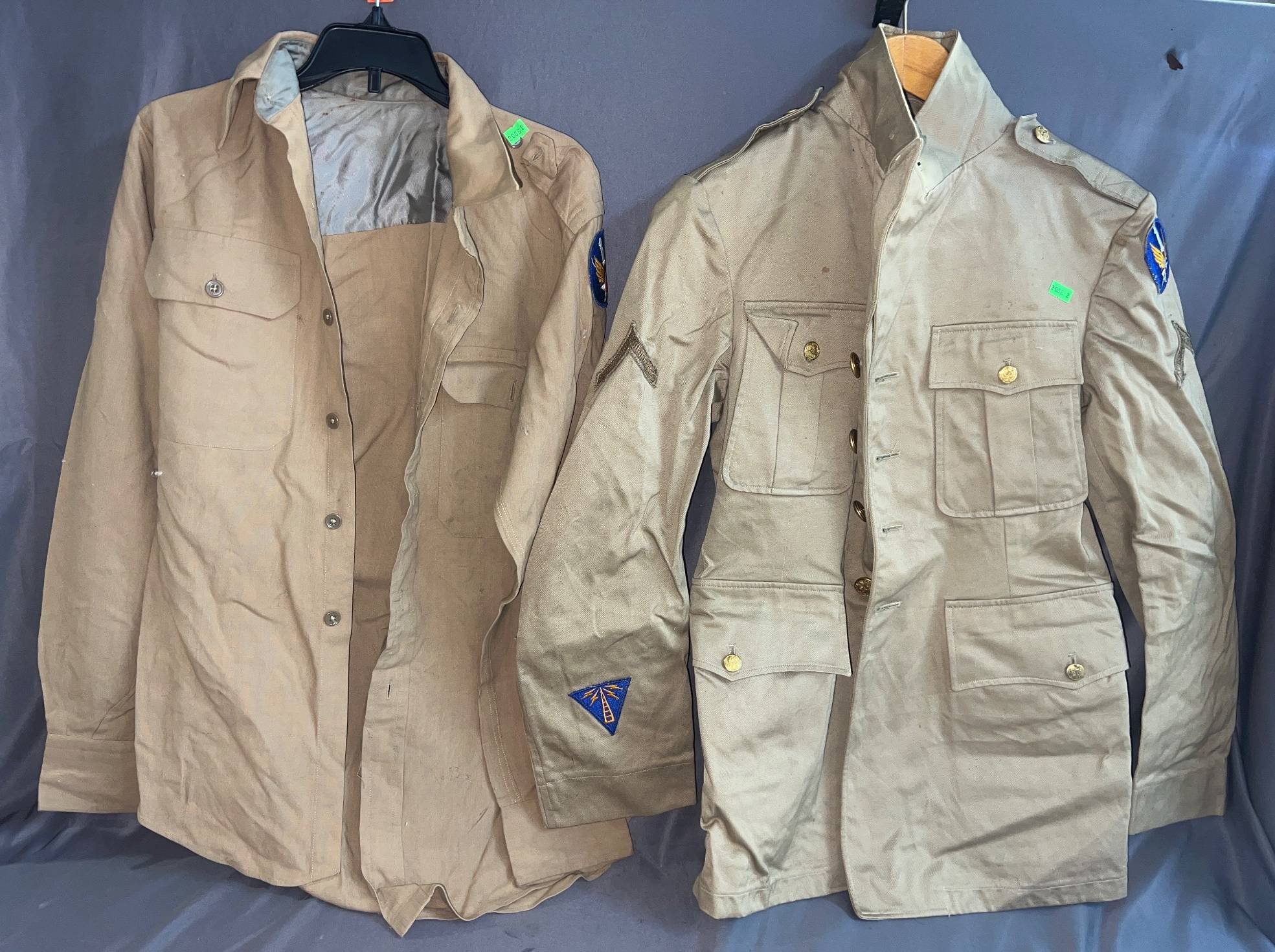 2006 2 Military Uniform Jackets with Insignia, One with US Air Force Patch, Show Wear, 16.5”x29” & 18.5”x29”
