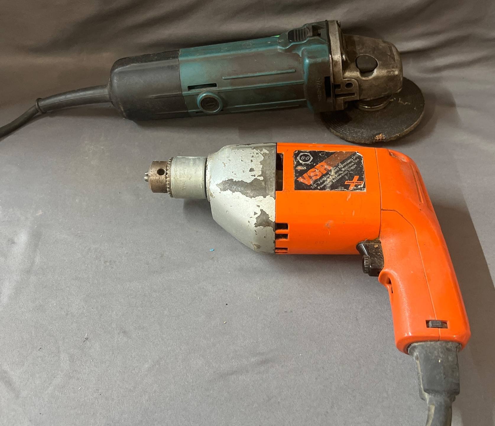 2008 Black & Decker 3/8 Reversing Drill and Makita 9556HN Angle Grinder, 8” x 9” & 4.5” x 11”, Untested