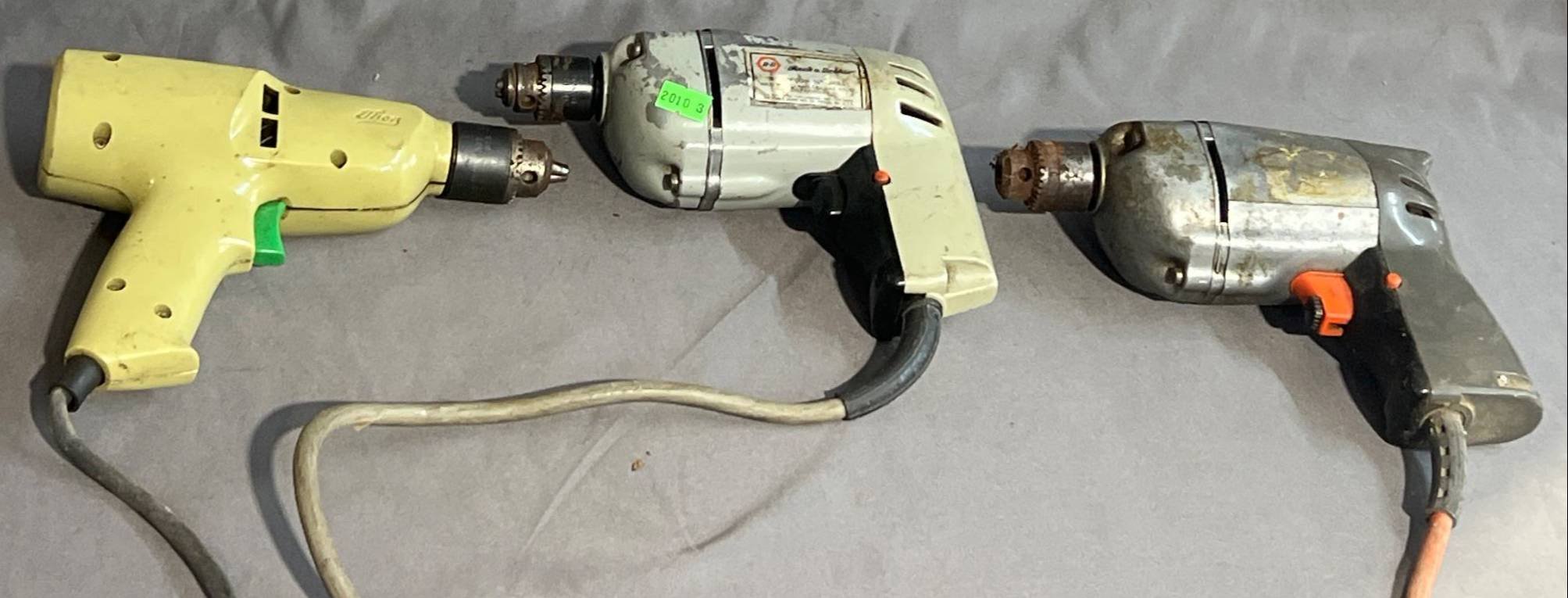2010 3 Thor, Black & Decker, and Unbranded Handheld Power Drills, 7.5” x 8”, 7” x 8.5”, 6.5” x 9”, untested