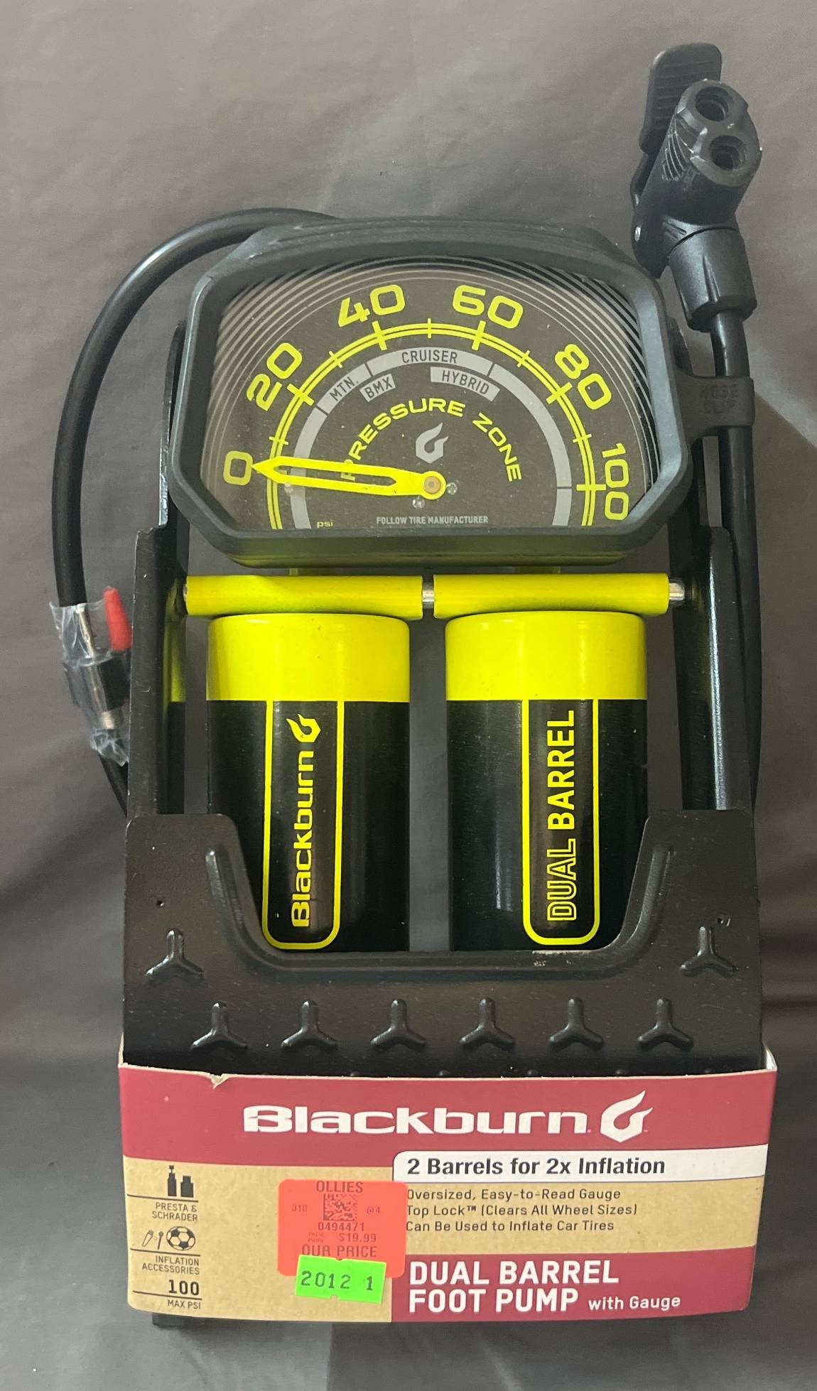 2012 Blackburn Dual Barrel Foot Pump with Gauge, 6.5” x 13”, Untested