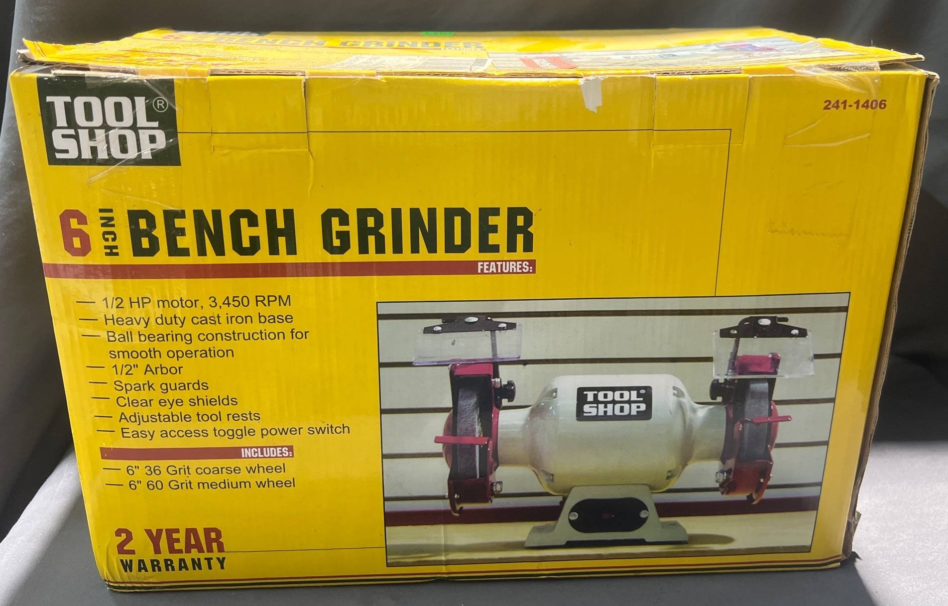 2013 Tool Shop 6-Inch Bench Grinder, 12 HP Motor, 3450 RPM, 15.5” x 8.5” x 10.5” (Sealed)