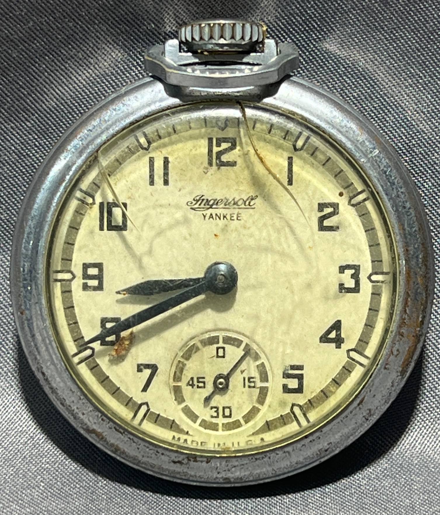 2019 Ingersoll Yankee Pocket Watch, 1.5” x 2”, Untested, 2 Cracks in Face Plate (Back Doesn’t Open)