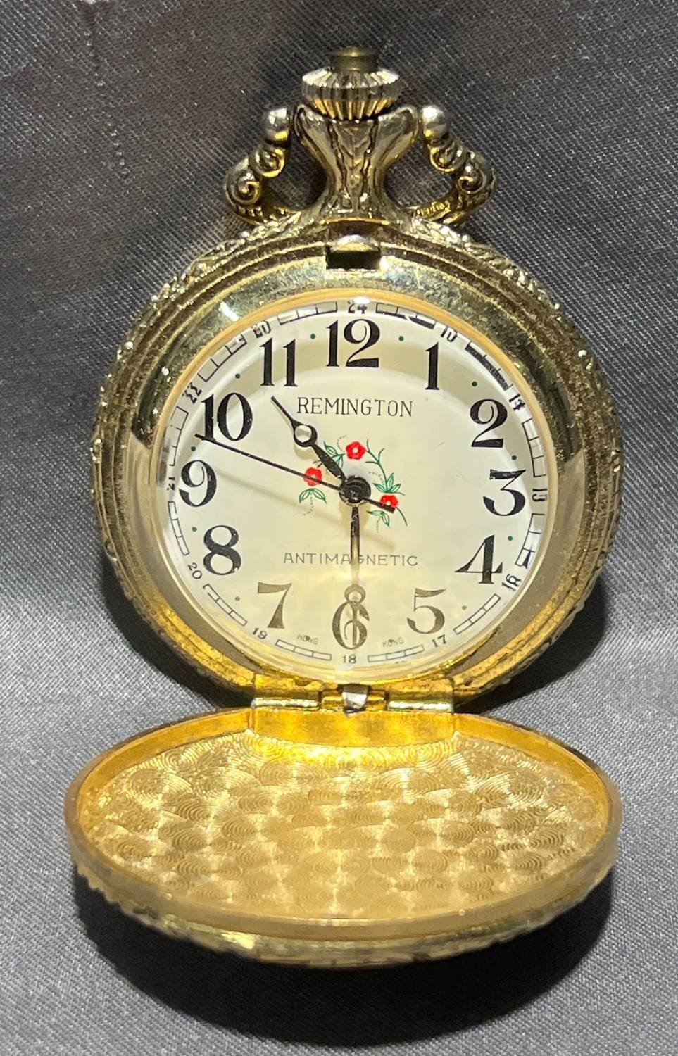 2021 Remington Gold-Tone Pocket Watch, Train Motif, 2” x 3” Back does not come off, Untested