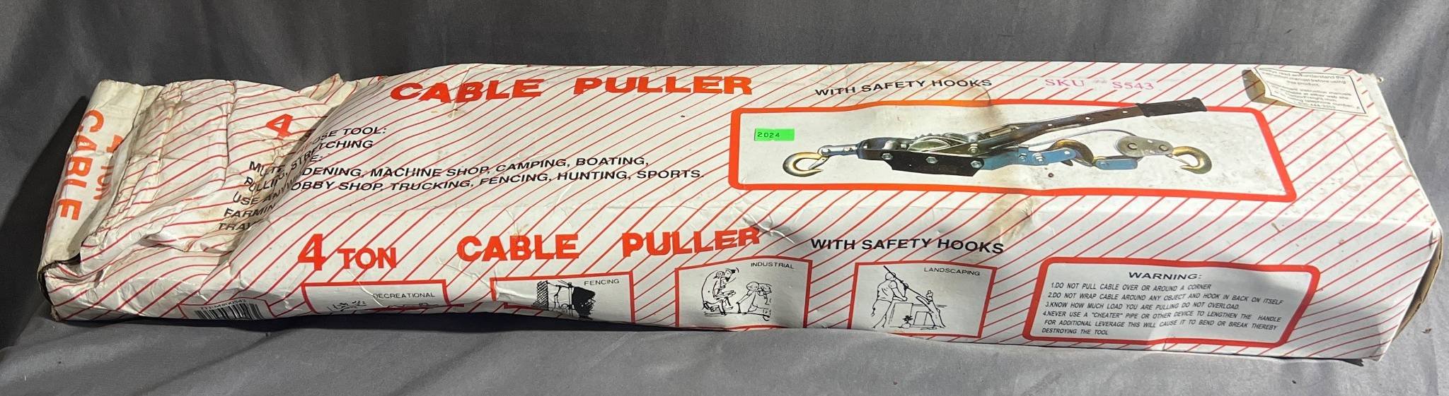 2024 4-Ton Cable Puller with Safety Hooks, 5.5” x 28”