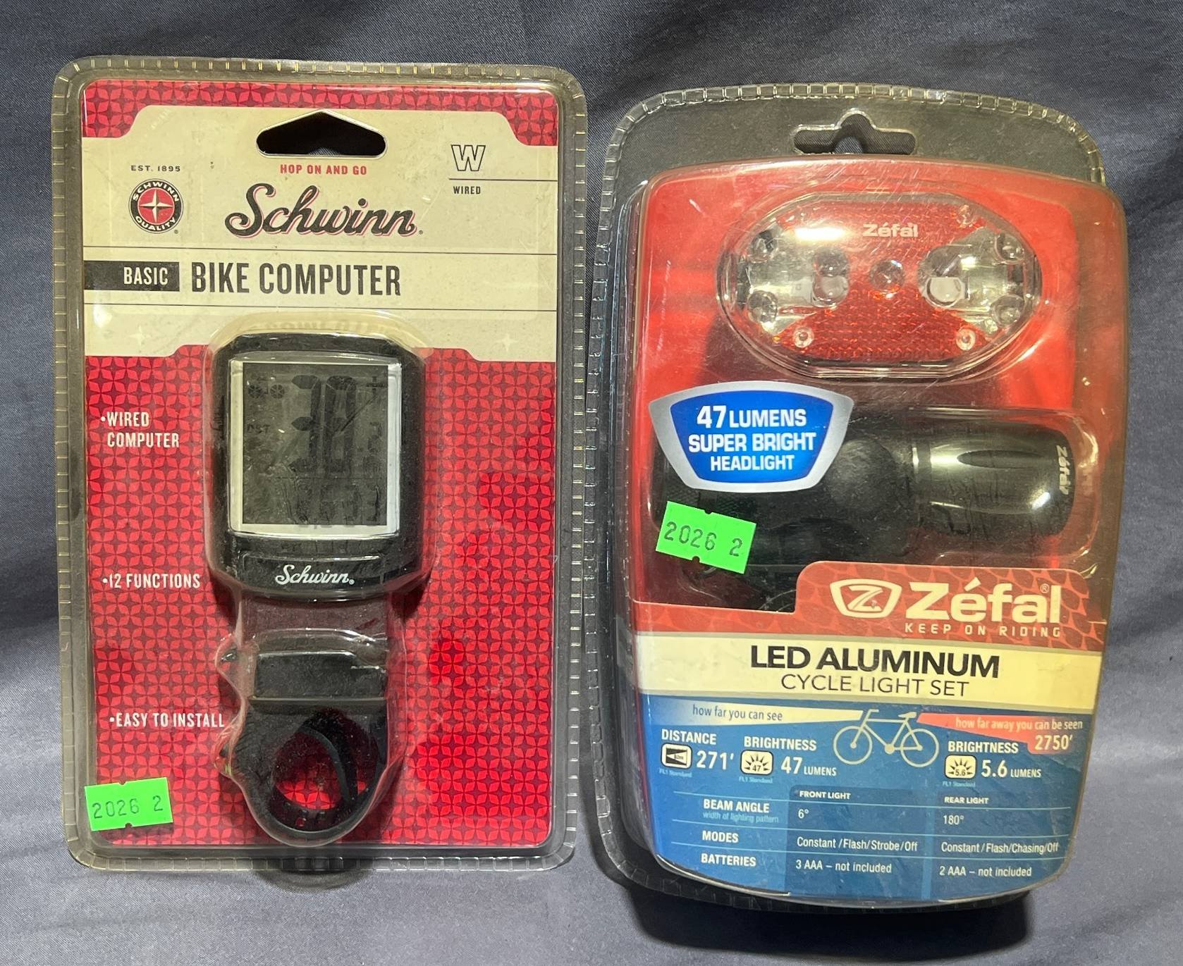2026 Schwinn Basic Bike Computer & Zefal LED Aluminum Cycle Light 5.5” x 8.5” & 6.5” x 8.5” Untested