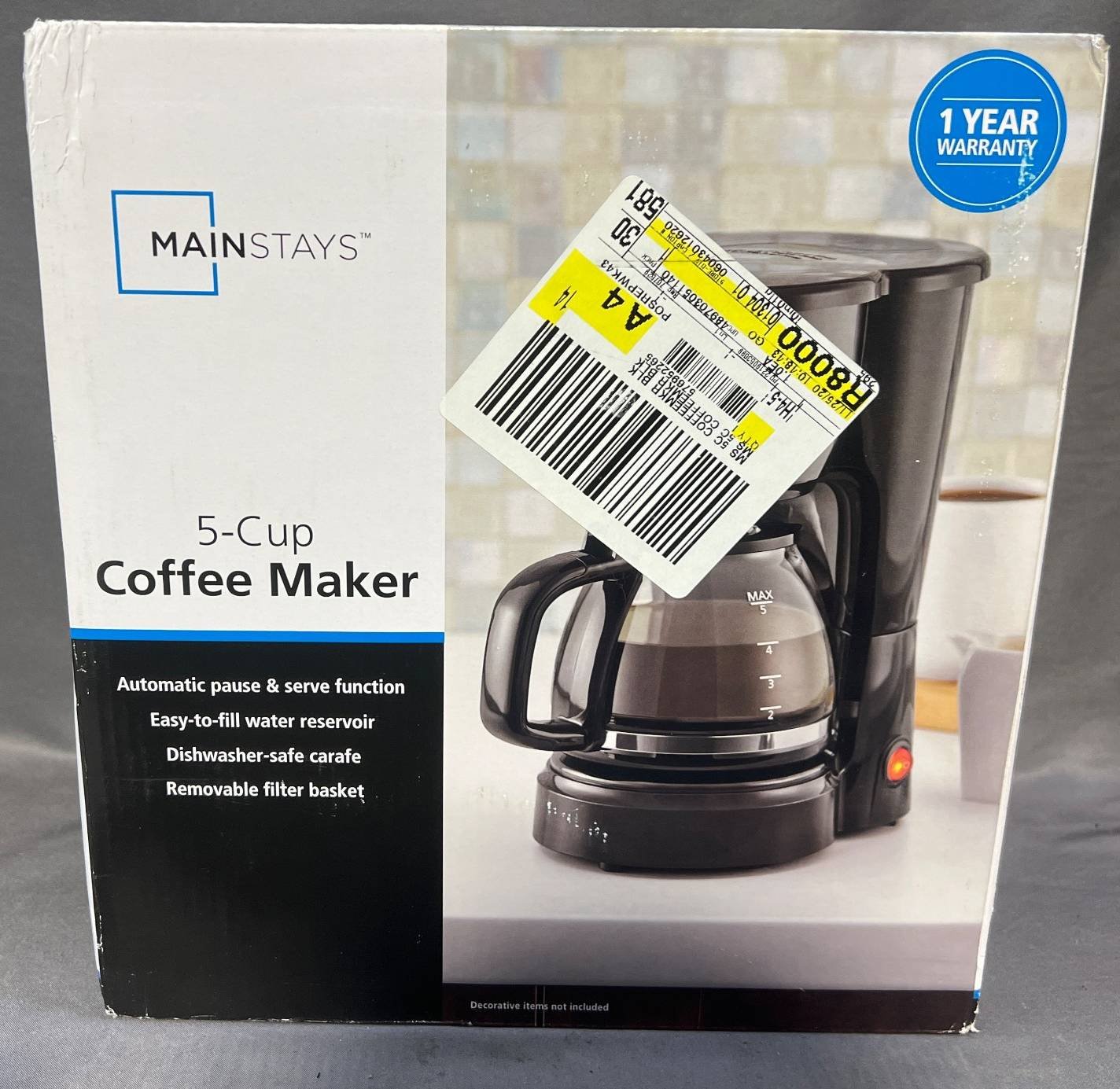2030 Mainstays 5-Cup Coffee Maker, 10” x 11” , Untested