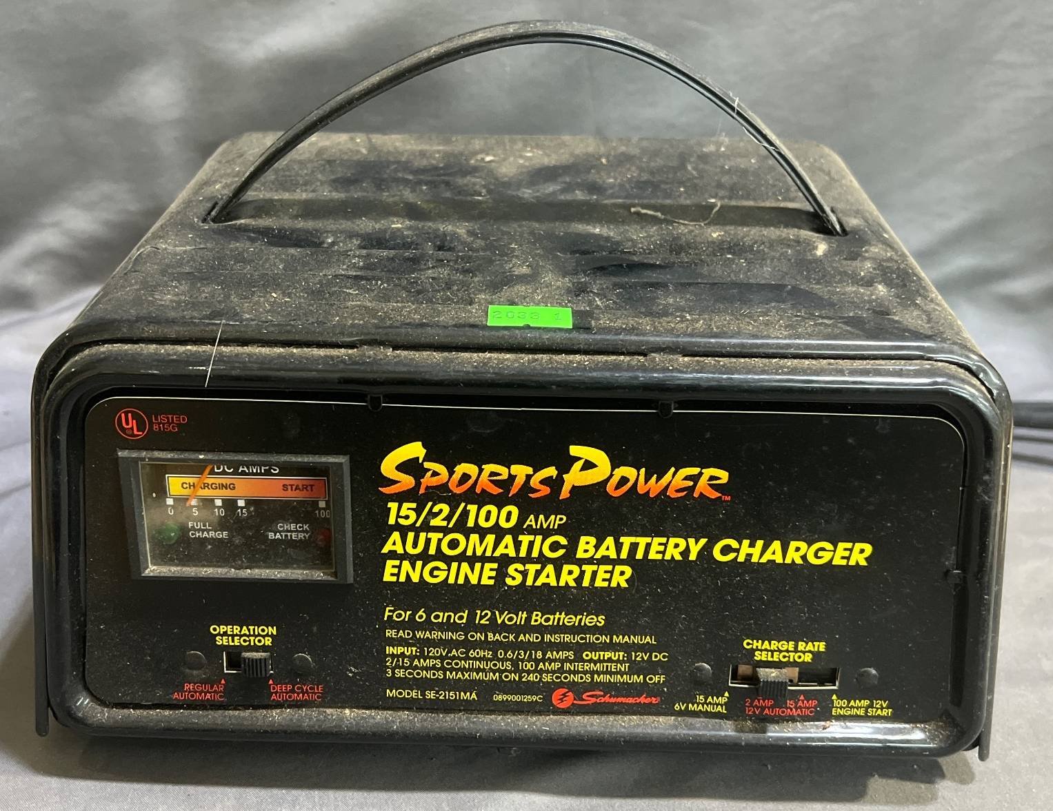 2033 SportsPower Automatic Battery Charger & Engine Starter, 15/2/100 AMP, 5” x 10” (Not Tested)