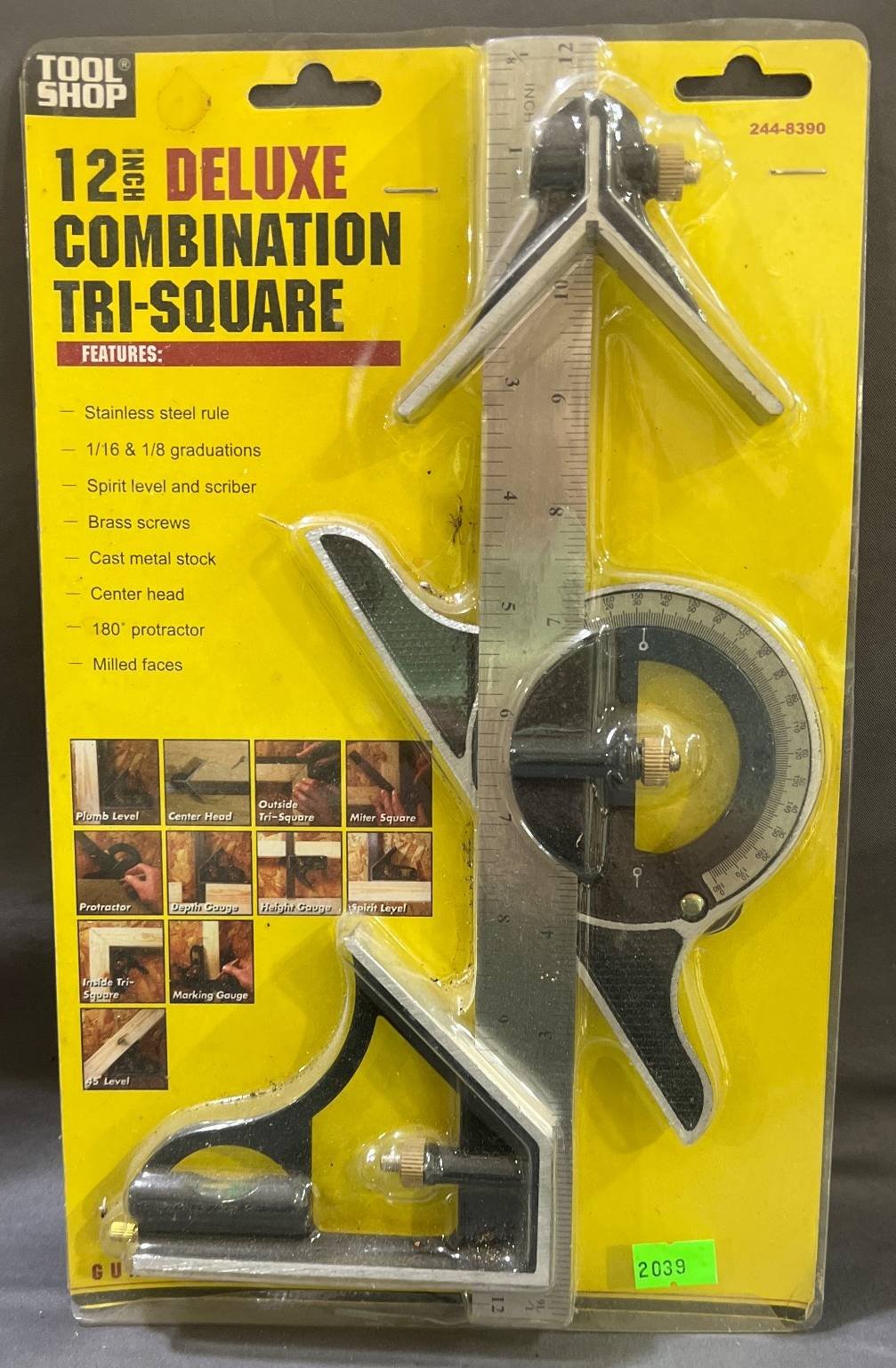 2039 Tool Shop 12-In. Deluxe Combination Tri-Square, 8” x 12.5”