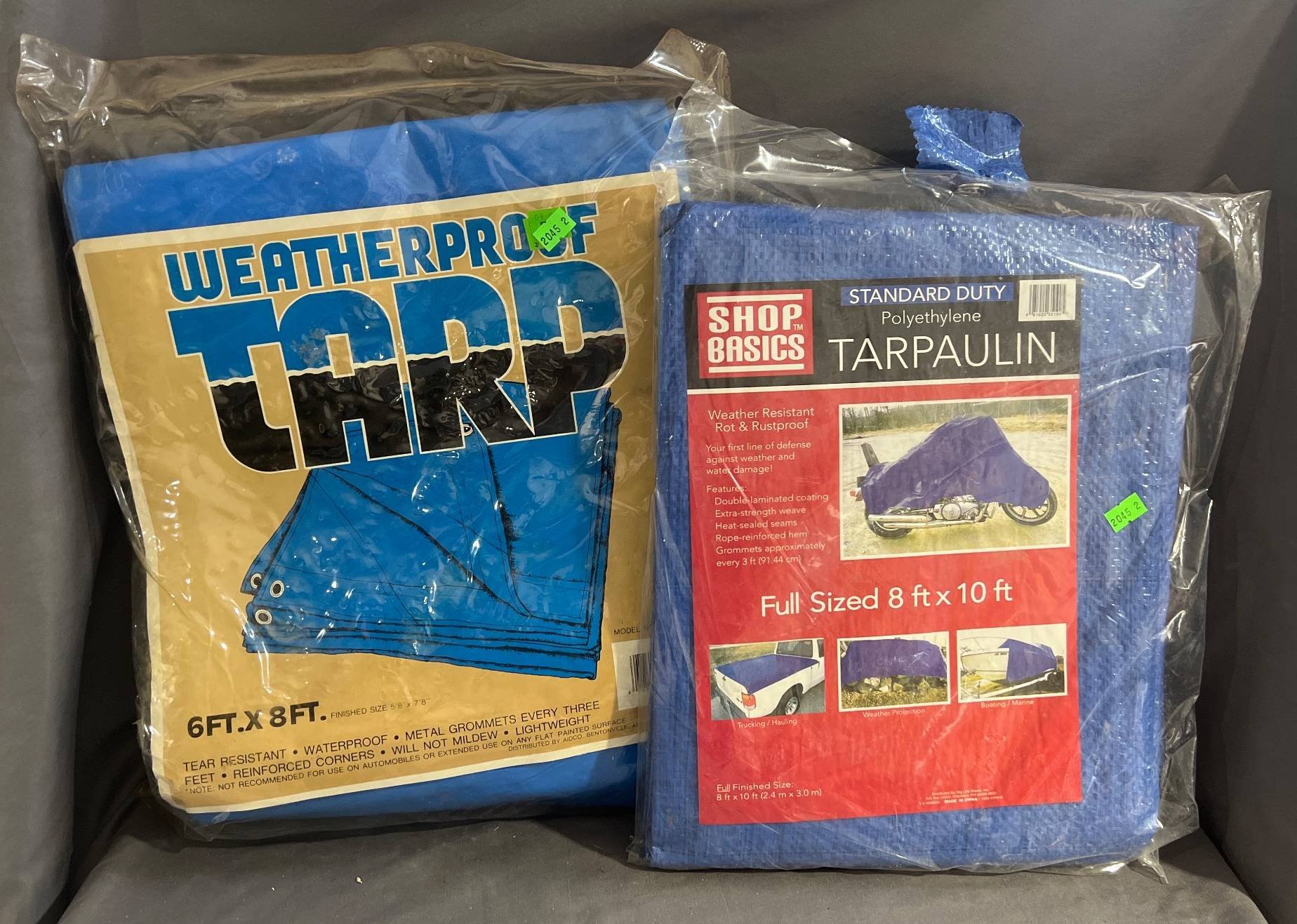 2045 Weatherproof Tarp and Shop Basics Tarpaulin, Polyethylene 6? x 8?, 8? x 10?