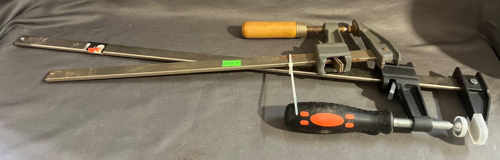 2046 2 Metal Bar Clamps with Wood & Plastic Handles, 4” x 15.5” & 4” x 21.5”