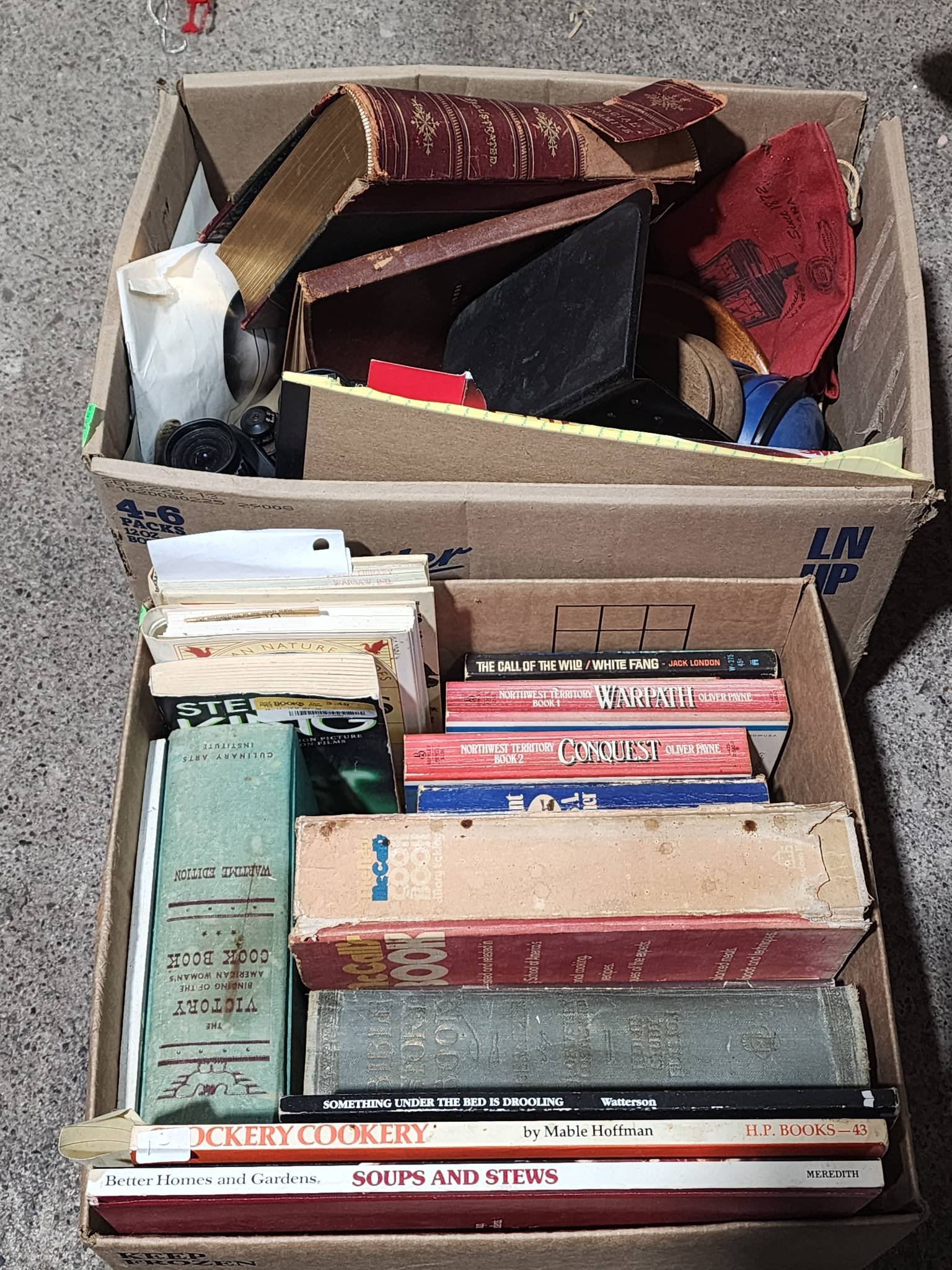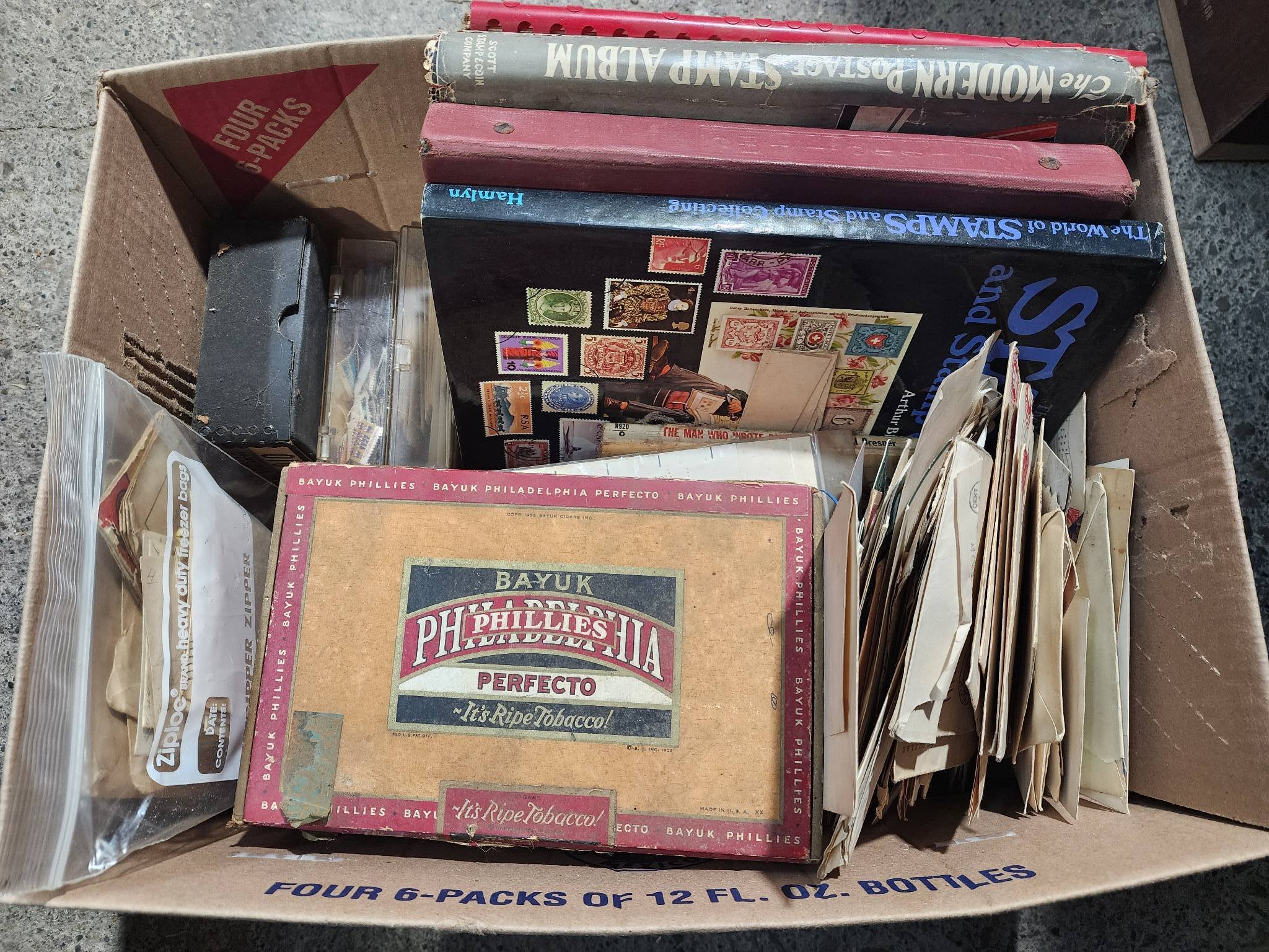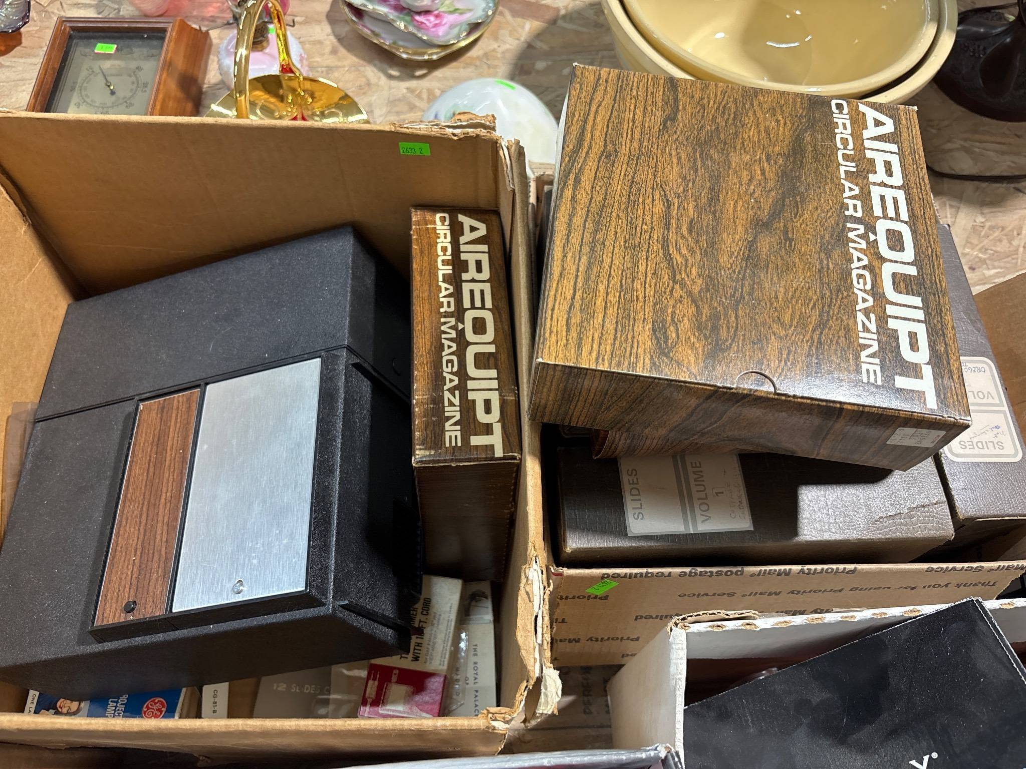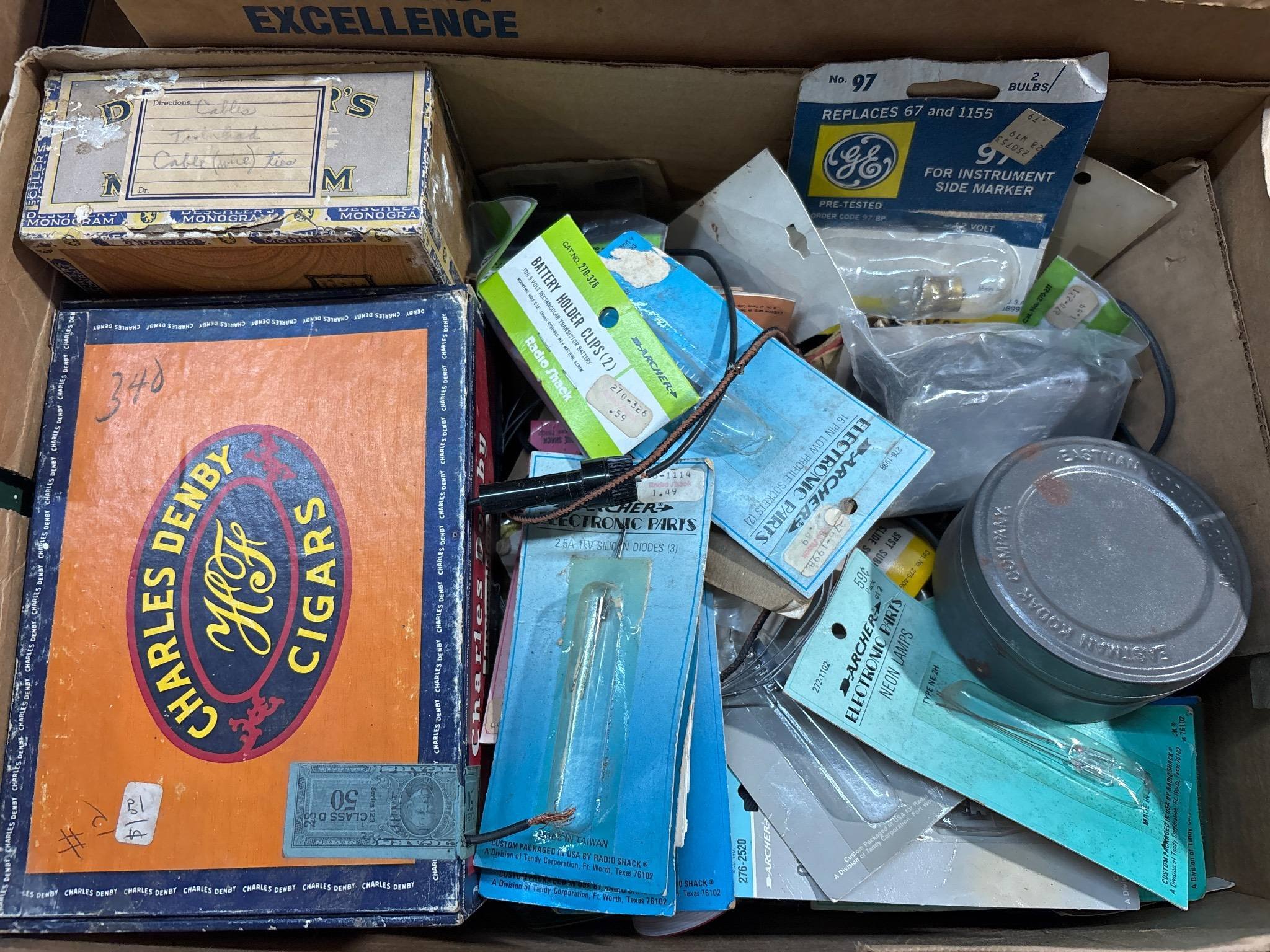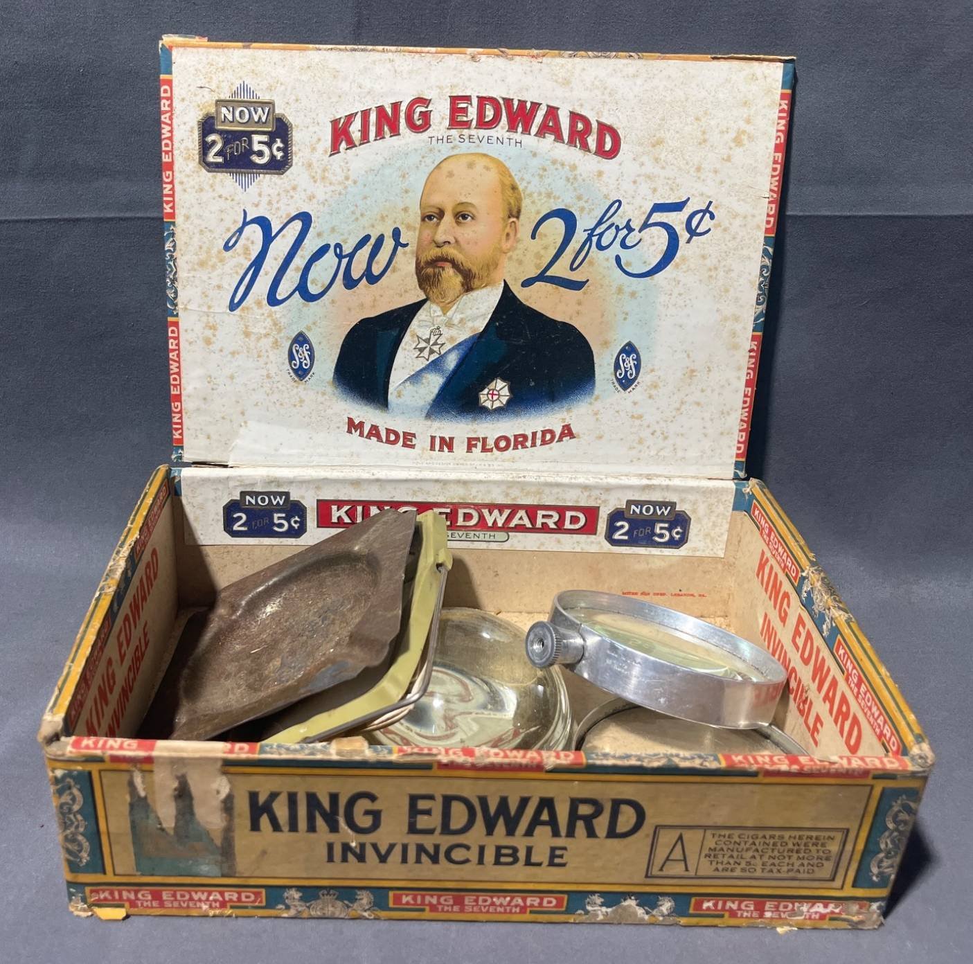 2048 Advertising: Penguin Point Ashtray, Wayne Love Motors Warsaw, IN, Magnifying Lenses and King Edward Cigar Box