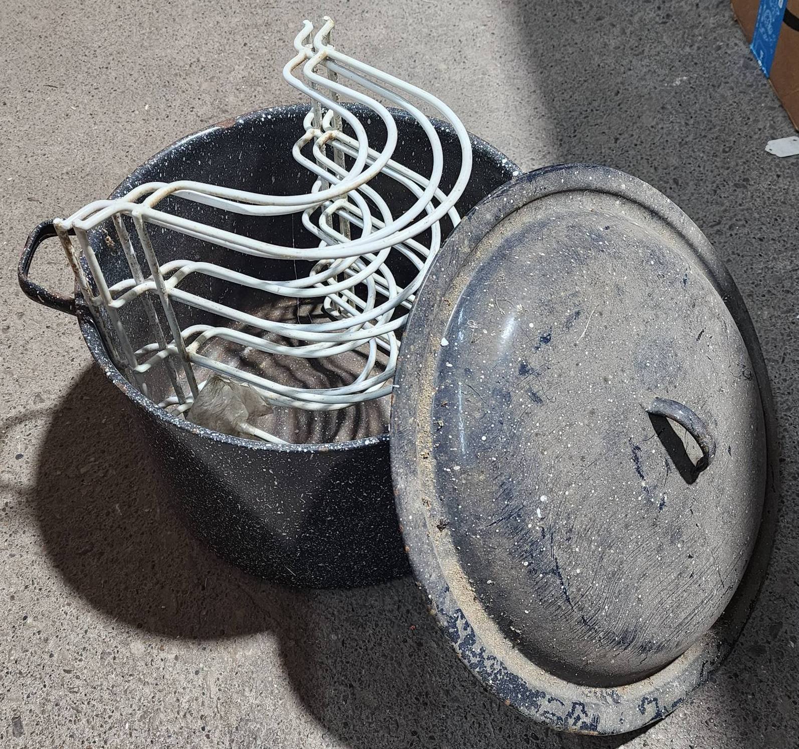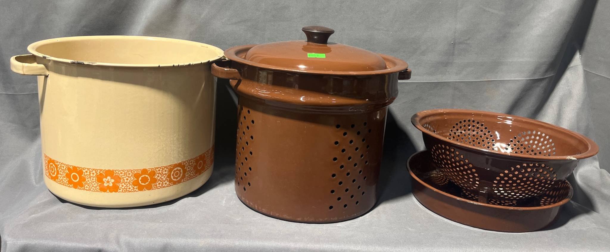 2053 Enamel Cookware With Lid and Strainer Components 10”x7”