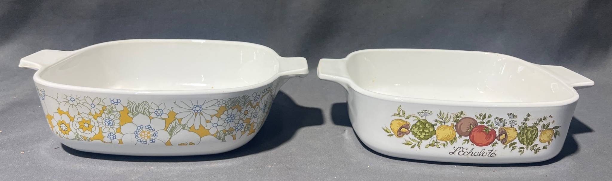 2054 2 Corning Ware Baking Dishes with Spice of Life and Floral Bouquet Patterns 1 QT