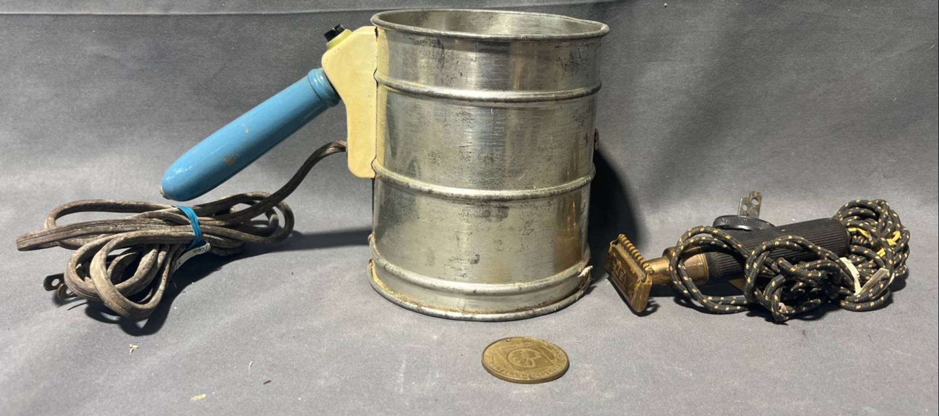 2055 Electric Sifter, Tark Electric Razor, and R.R. Donnelley Warsaw, Indiana Division Award Medal Untested 4”x5”