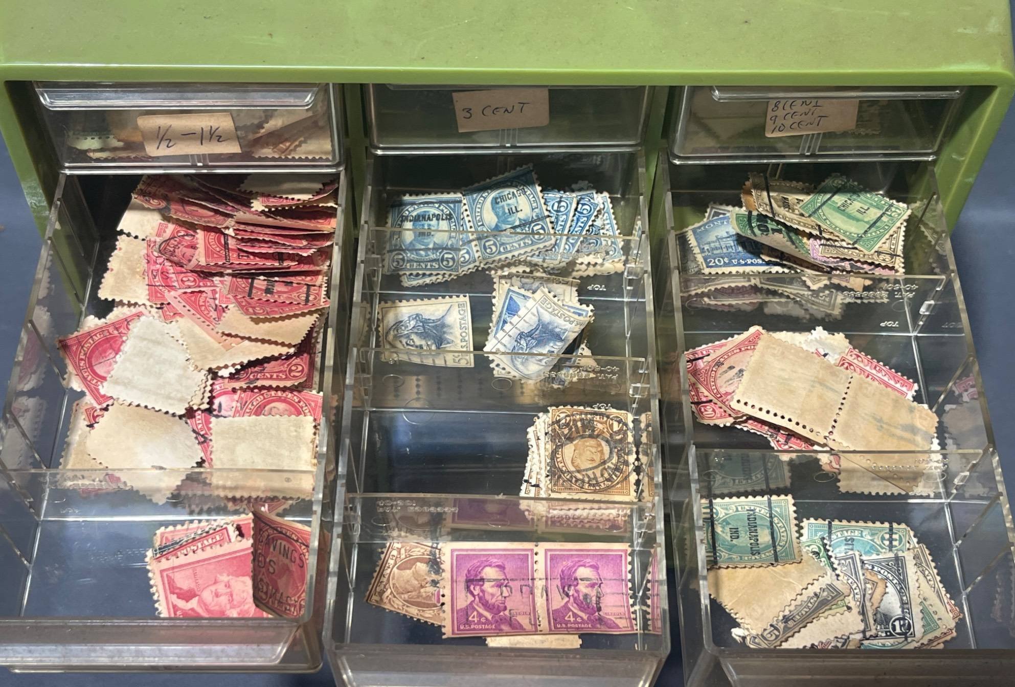 2057 2 Plastic Organizers with U.S. Postage Stamps, 9.5×6.5×4.5?