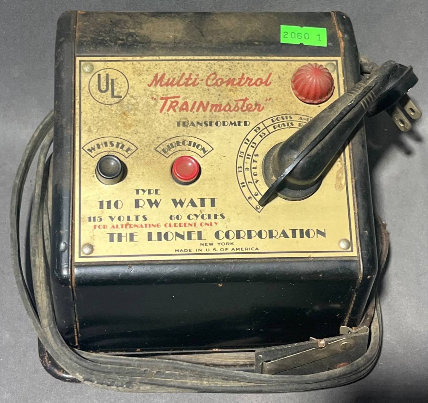2060 Lionel Corporation Multi-Control Trainmaster Transformer, 110W – Untested
